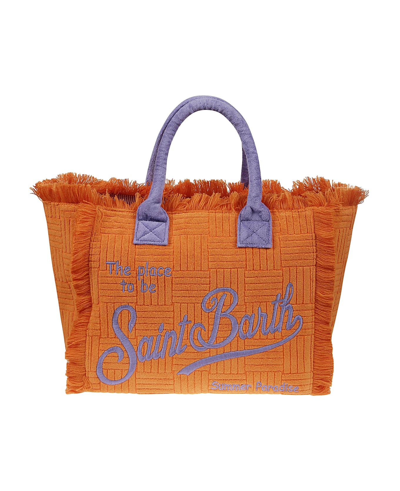 MC2 Saint Barth Bag in orange cotton, sponge effect, handle insert and purple logo, size 40cm x 32cm x 20cm Composition: 60% Co, 40% Pl