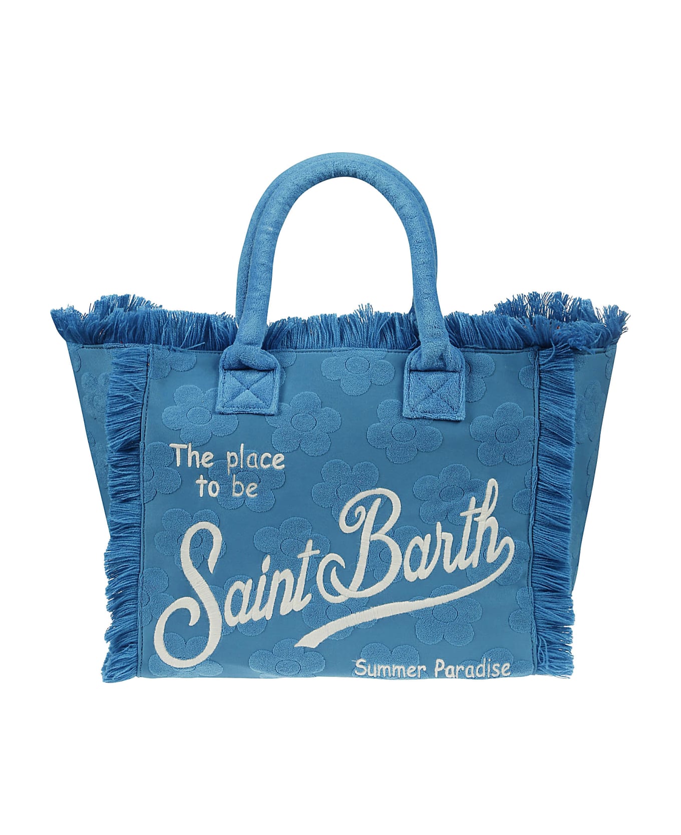 MC2 Saint Barth Light blue cotton bag, sponge effect, floral inserts, white logo detail, size 40cm x 32cm x 20cm Composition: 60% Co, 40% Pl