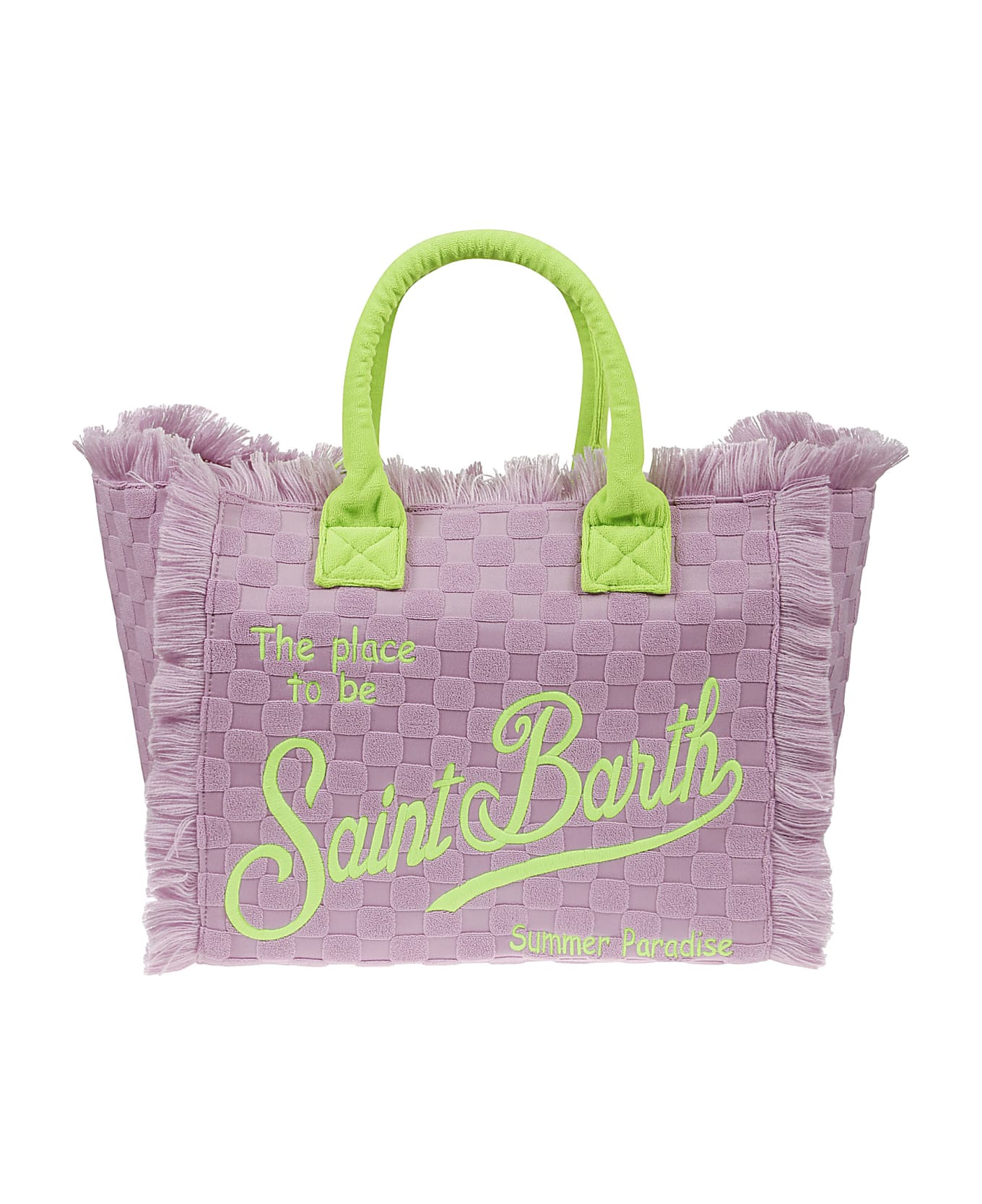 MC2 Saint Barth Pink cotton bag, sponge effect, green handles and logo, size 40cm x 32cm x 20cm Composition: 60% Co, 40% Pl
