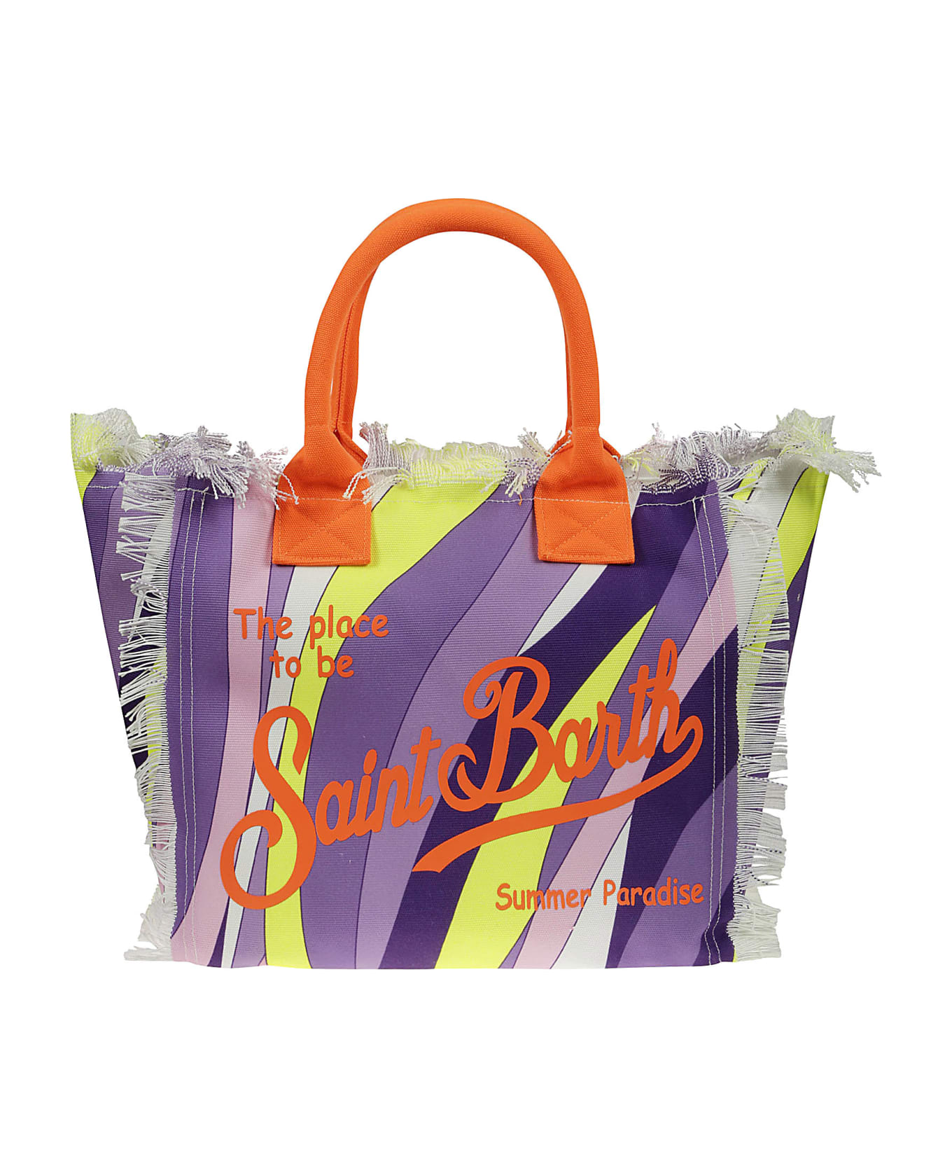 MC2 Saint Barth Bag in multicolor cotton, logo detail, orange handles, fringe insert, size 40 x 32 x 20 Composition: 60% Co, 40% Pl