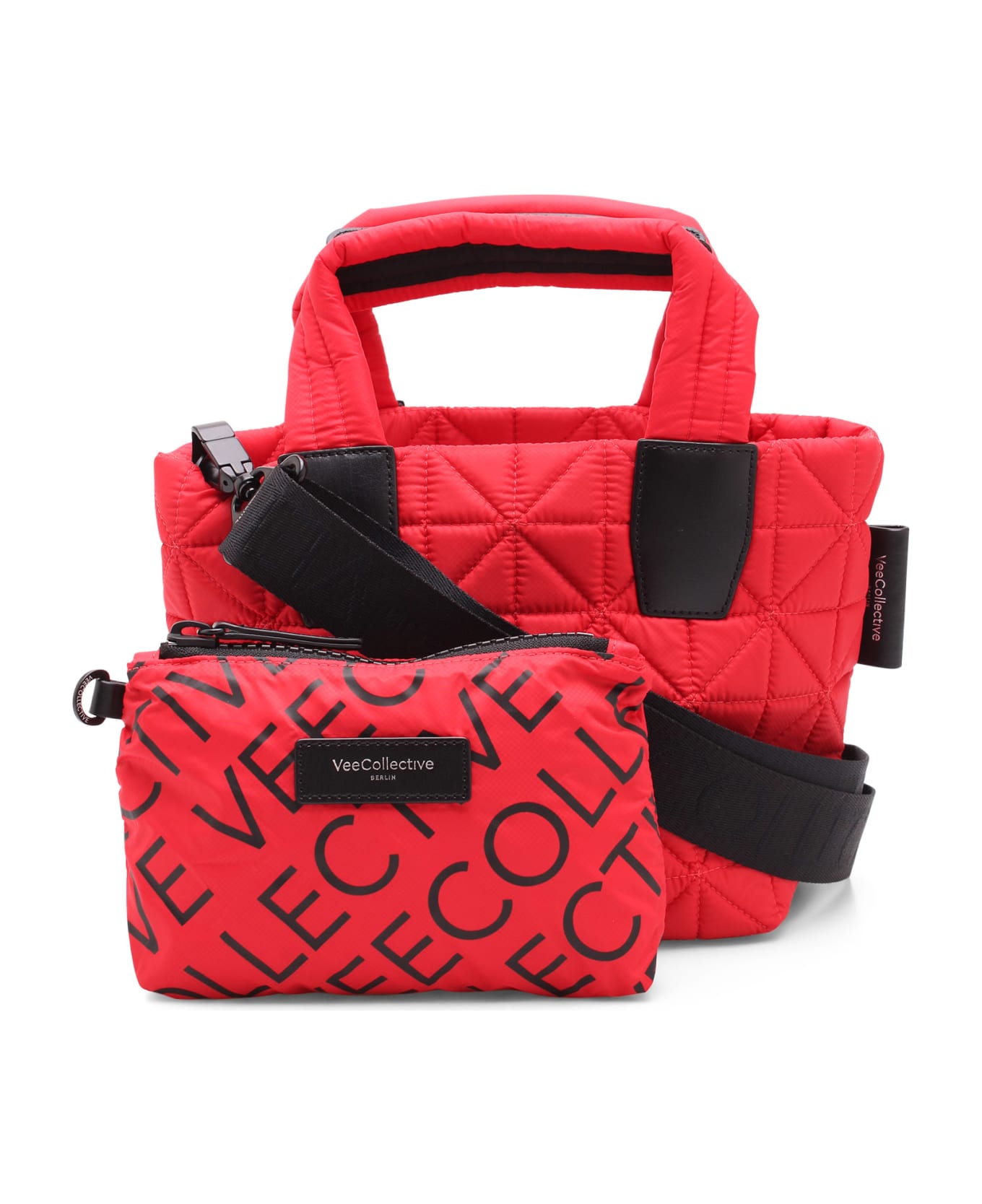 Nylon 'Vee Tote Mini' bag, padded and quilted design, flat handles, internal zip pocket, adjustable and removable shoulder strap, by Vee Collective