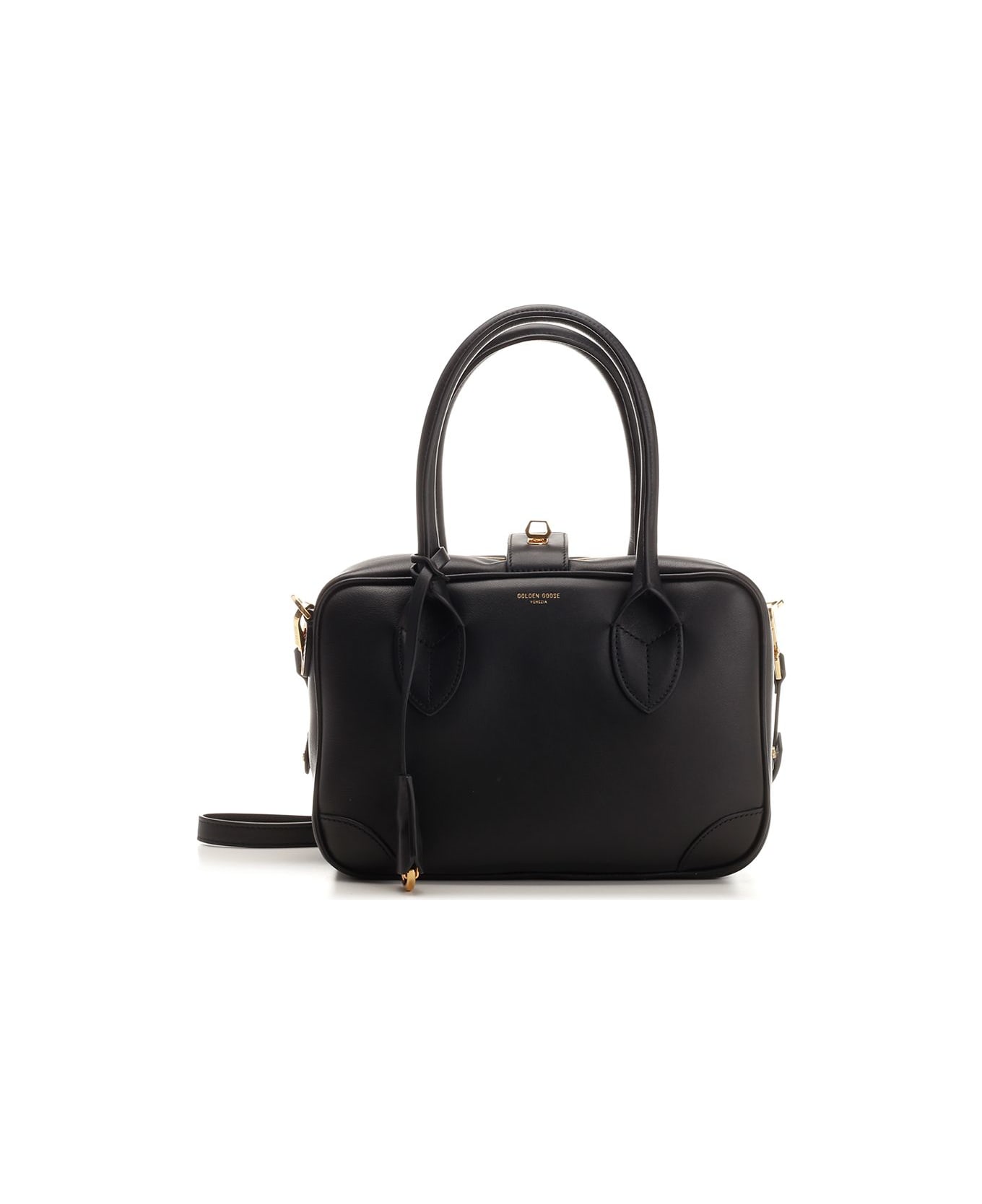 'Vita' black leather bowling bag from Golden Goose, with detachable shoulder strap, zip closure, protective feet.