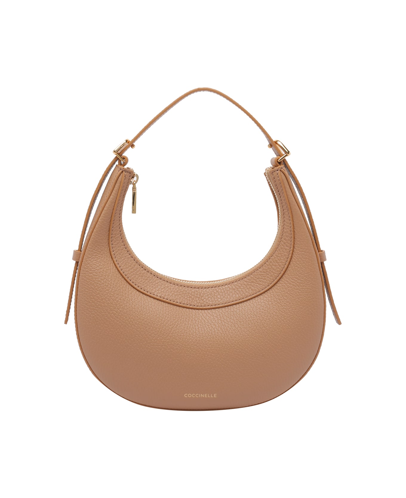 Coccinelle skin Whisper hobo bag, zip closure, adaptable and removable strap, frontal mini logo