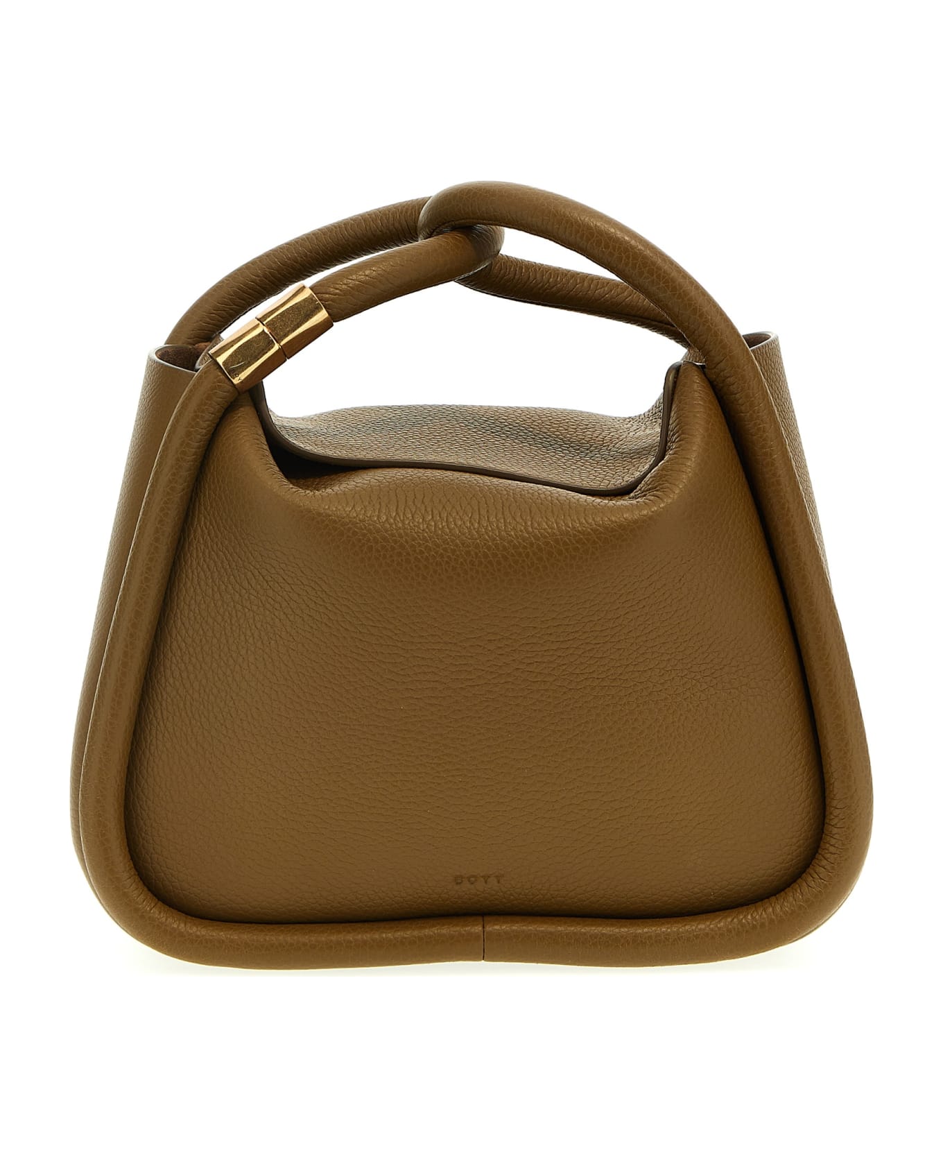'Wonton 25' pebble leather handbag, calf suede lining, oversized piping detail, magnetic closure, double handle, inside pocket, adjustable and removable leather shoulder strap, and protective metal feet at the base.
