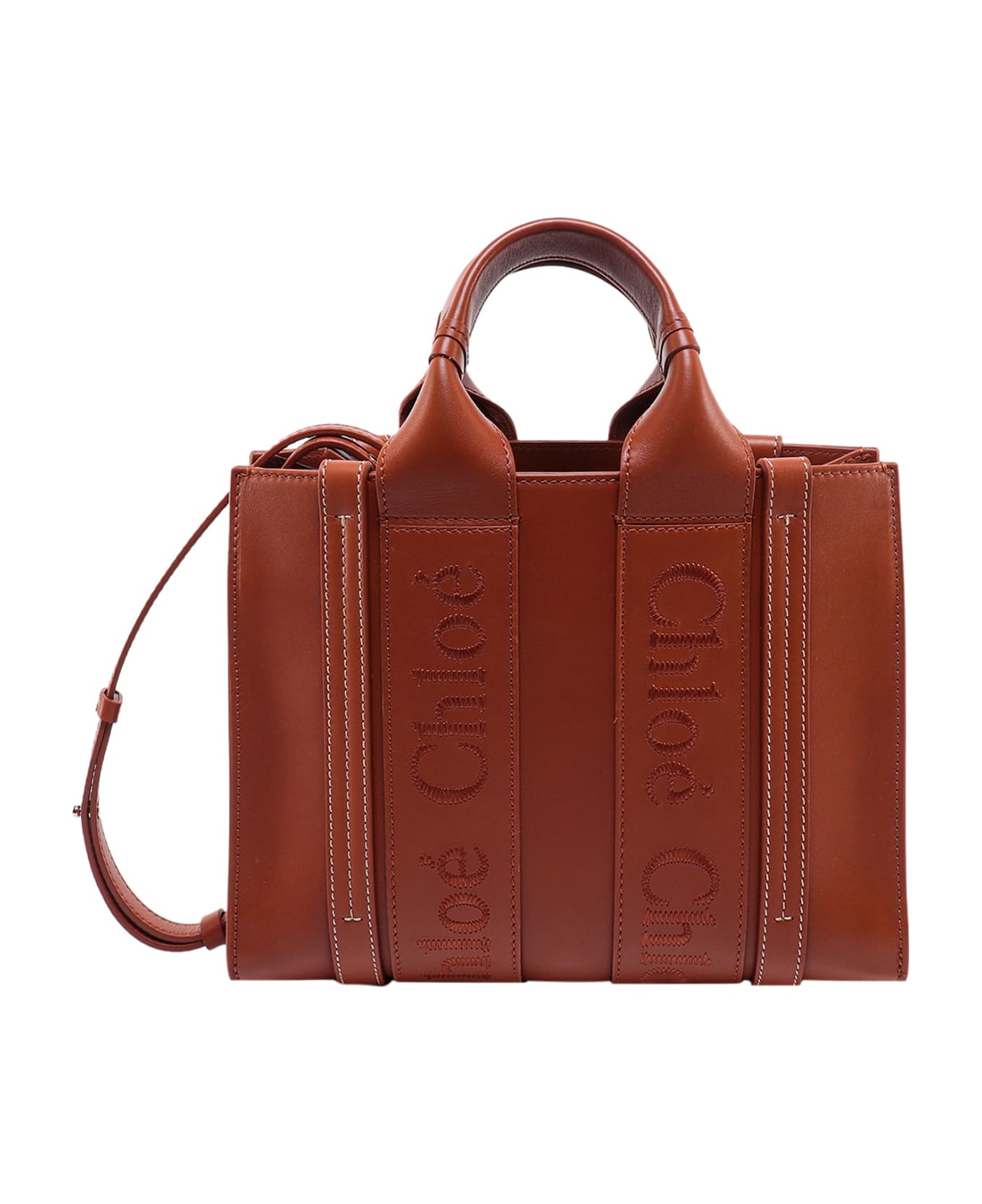 Leather handbag with embroidered logo - Without Closure - Adjustable And Removable Shoulder Strap - One Internal Pocket - Made In Italy - Leather
