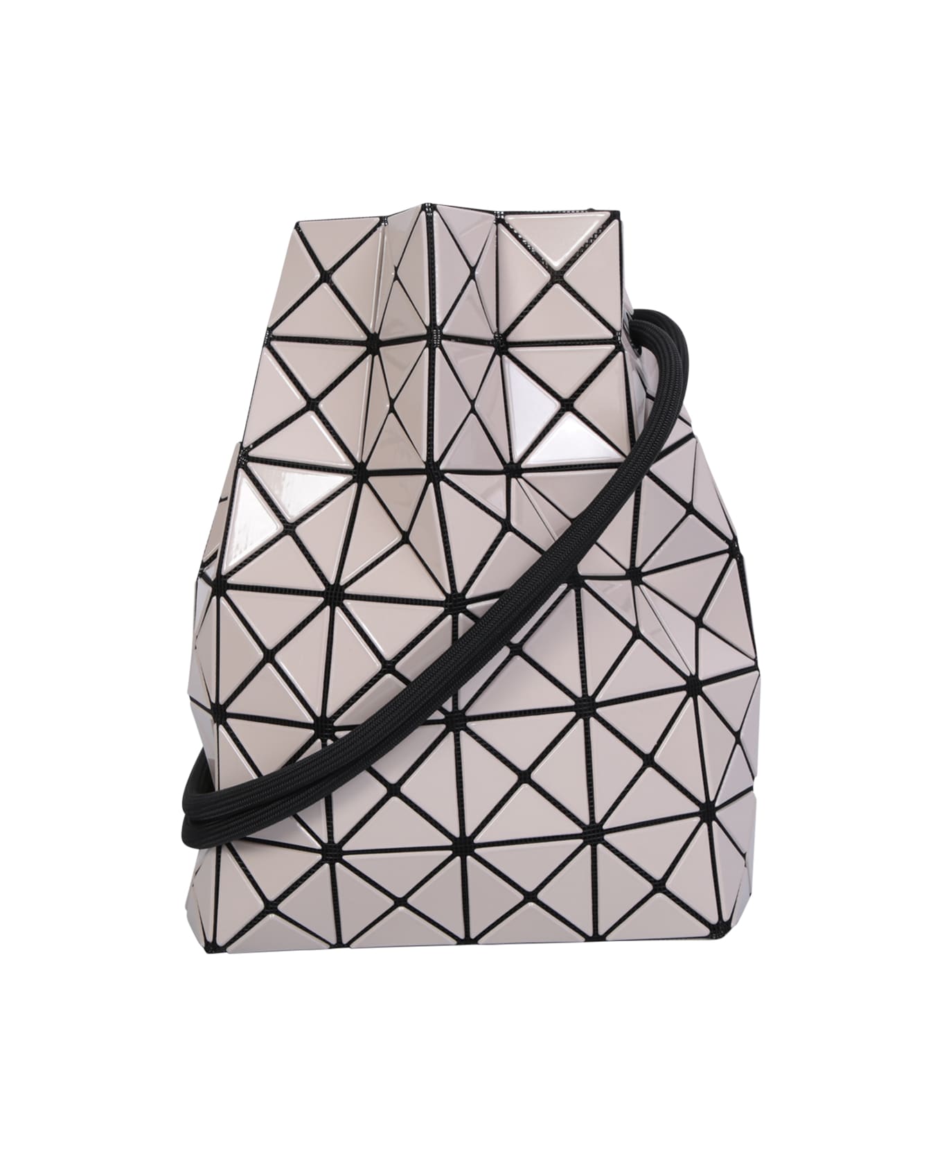 Drawstring fastening. Two top handle. Main compartment. Internal zip fastening pocket. Geometric panel design. Color: beige