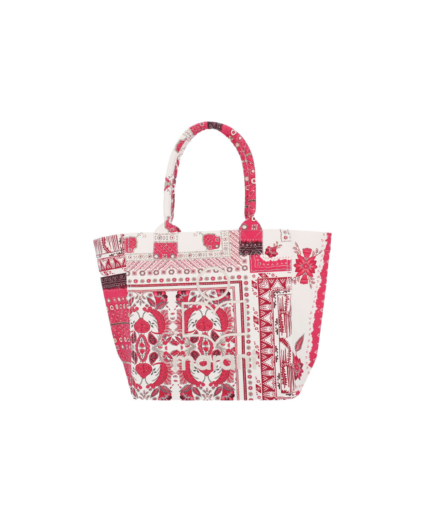 Isabel Marant 'Yenky' small bandana print tote bag in white cotton with pink bandana print pattern, two handles, white logo embroidery on the front, single inner compartment. Composition: 100% Cotton