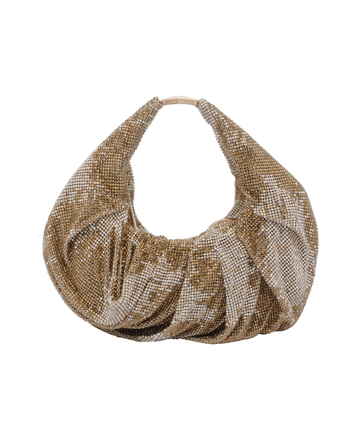 Brunetta Bruzziches gold Yennefer handbag, zip closure, one handle Composition: 100% Silk, 100% Strass