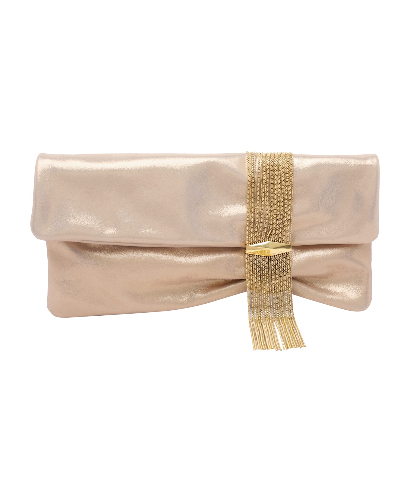 Jimmy Choo gold Zandra pochette, magnetic closure, inner open pocket, chain detail Composition: 100% Calf Leather