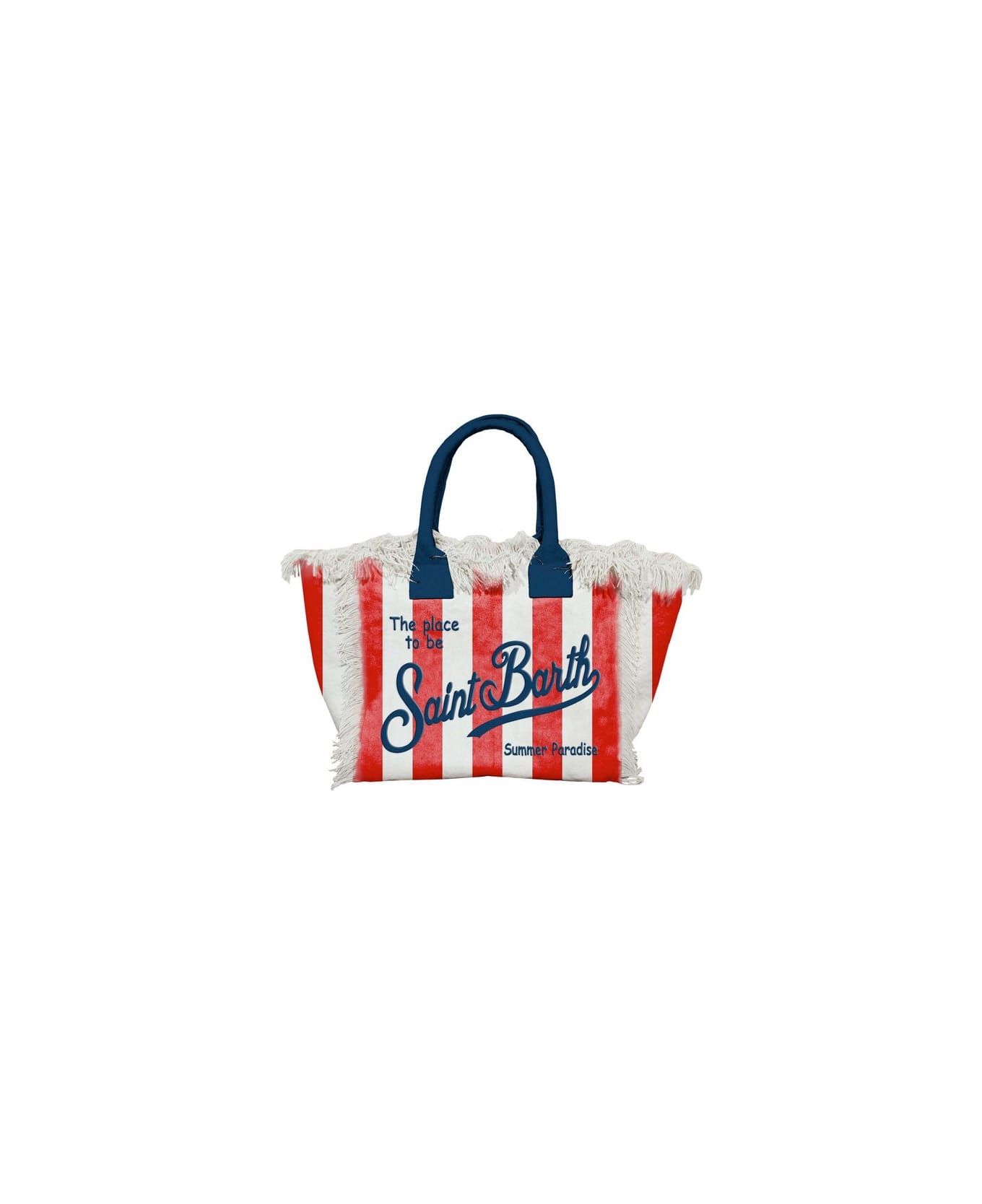 White and red stripes Shoulder canvas bag from MC2 St. Barth, cotton canvas material, exclusive Saint Barth printed logo, zip closure, cotton canvas fringes, internal zip pocket. Dimension:40x32x20