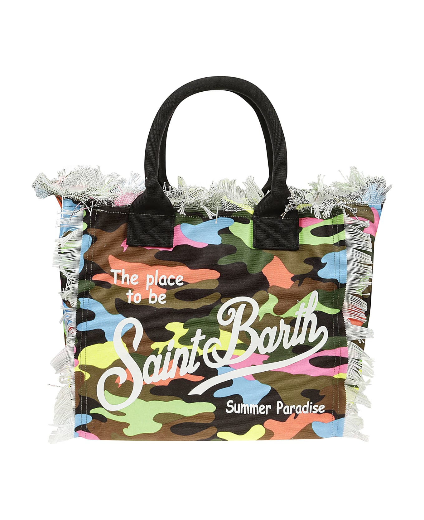 MC2 Saint Barth Cotton bag, multicolor camouflage pattern, black handles, white logo detail, fringed insert, size 40cm x 32cm x 20cm Composition: 60% Co, 40% Pl