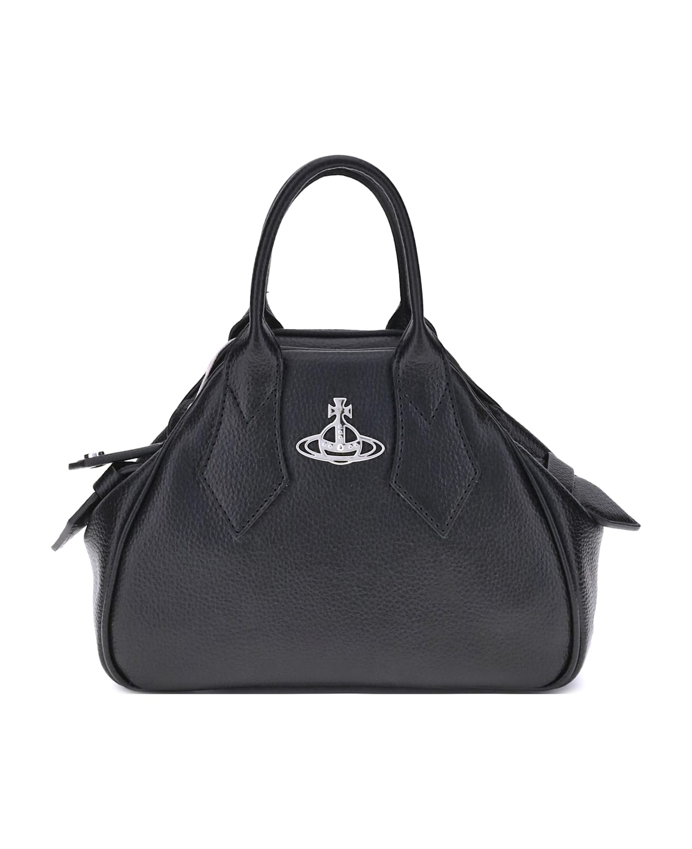 Vivienne westwood's yasmine hand bag is a brand classic reinterpreted with a textured finish that enhances its personality. featuring top handles and a zipper closure, it combines practicality and style. on the front stands out the iconic embossed metal orb, a distinctive symbol of the westwood universe. an elegant and bold accessory, perfect for any occasion.