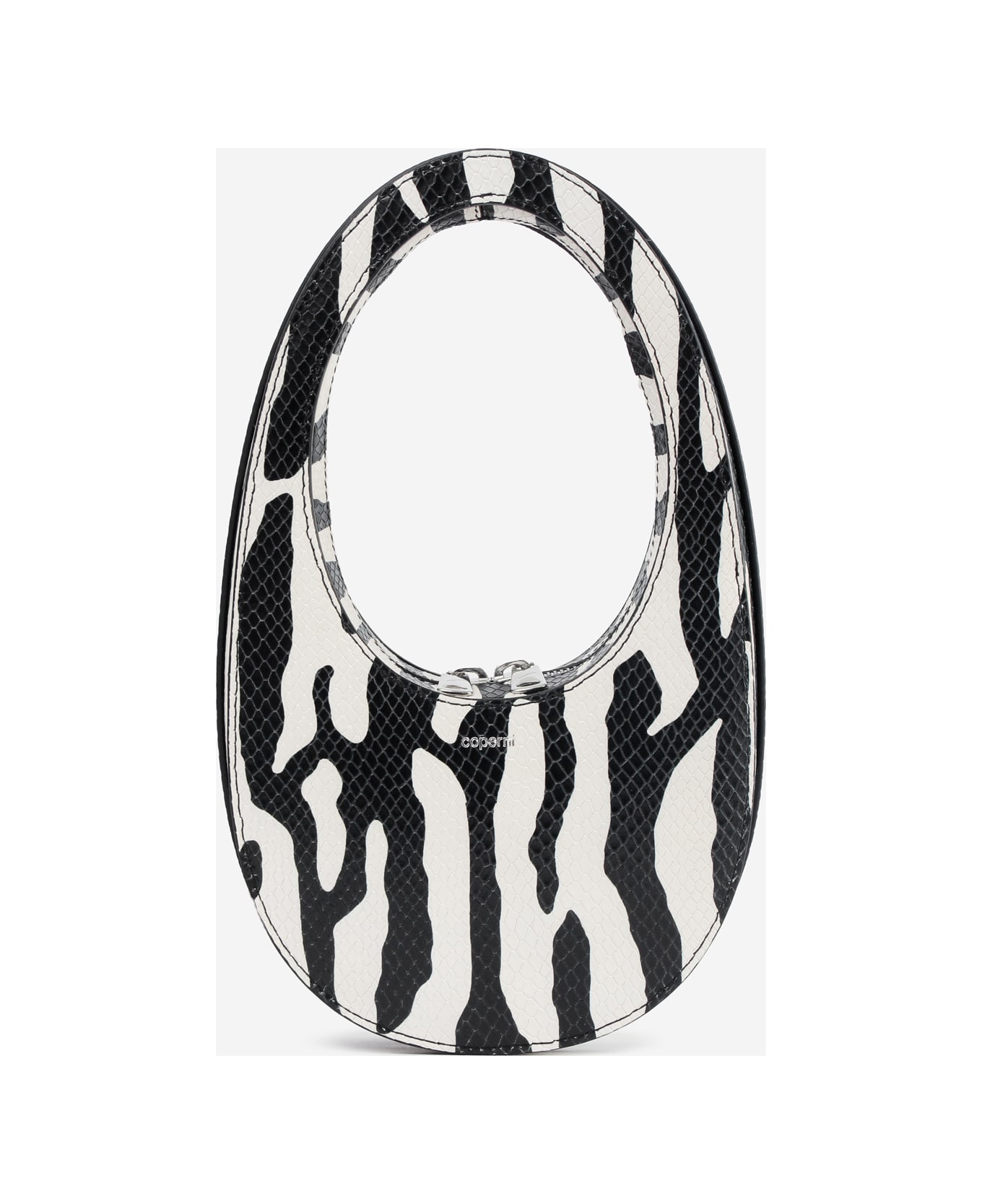 ZEBRA PRINT MINI SWIPE Bag in white leather, round handle, top zip closure, double slider, animal print, 100% leather, stiff handle