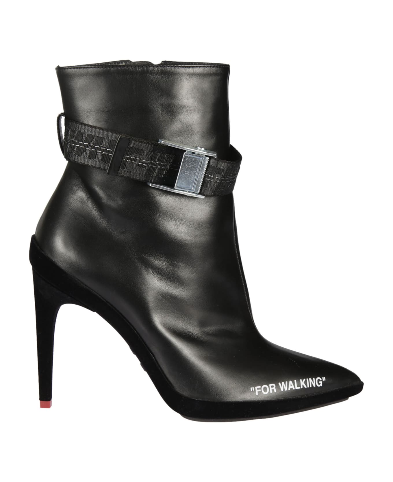 For Walking Ankle Boots from Off White: Black For Walking Ankle Boots with pointed toe, adjustable buckle fastening and high stiletto heel.