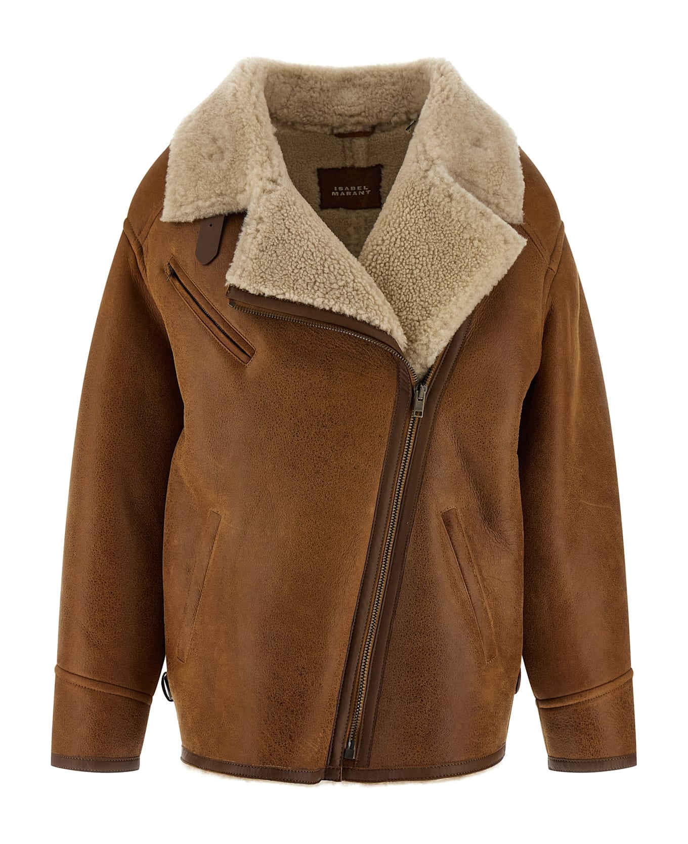 'Adelina' leather sheepskin jacket with side zip closure, fur collar with resealable strap with buckle, side pockets, adjustable straps on the sides, long sleeves. Composition: 100% lamb leather (Ovis aries)
