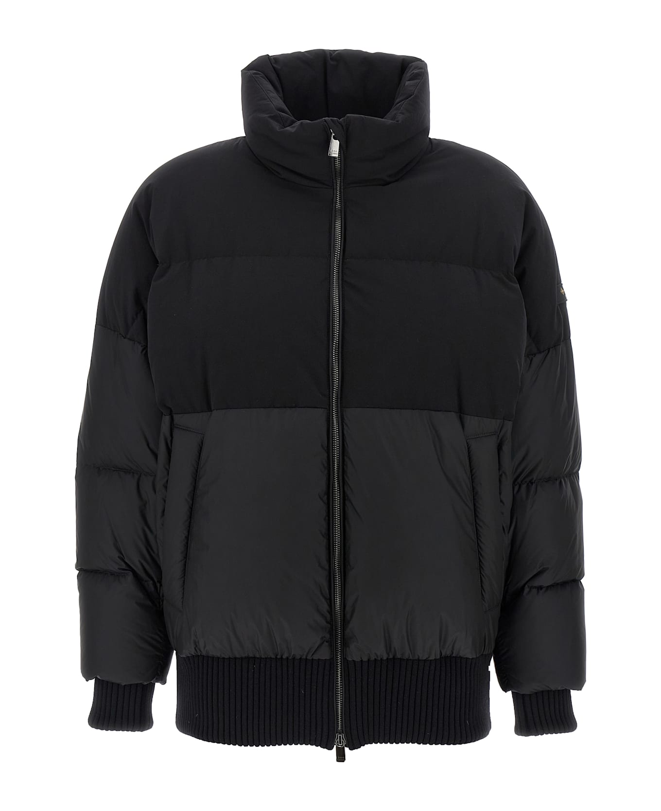'Arnica' bomber jacket in quilted technical fabric with goose feather padding, standing collar, front zip closure, pockets, long sleeves with stretch ribbed knit cuffs, stretch ribbed knit hem.
