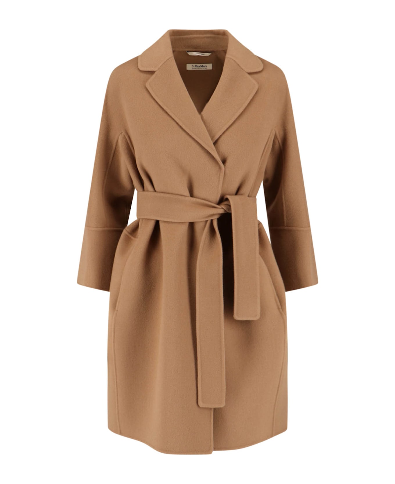 'Arona'S Max Mara short coat in brown virgin wool with classic lapels, adjustable belt at the waist, two side pockets, straight hem. Composition: 100% Virgin Wool
