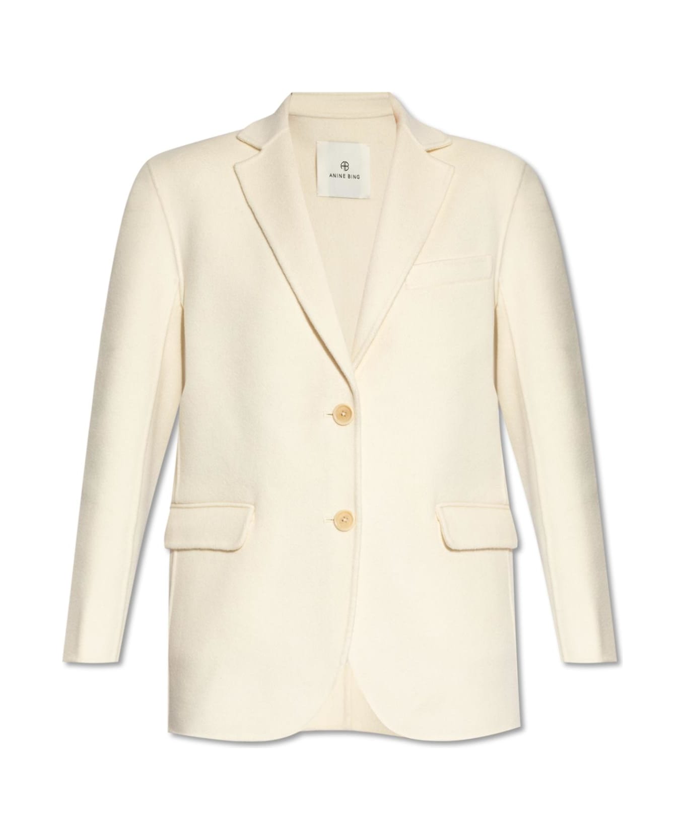 Cream 'Quinn' blazer from Anine Bing. Made from a wool and cashmere blend, this garment features notch lapels, buttons, two flap pockets, one slip pocket and long sleeves.