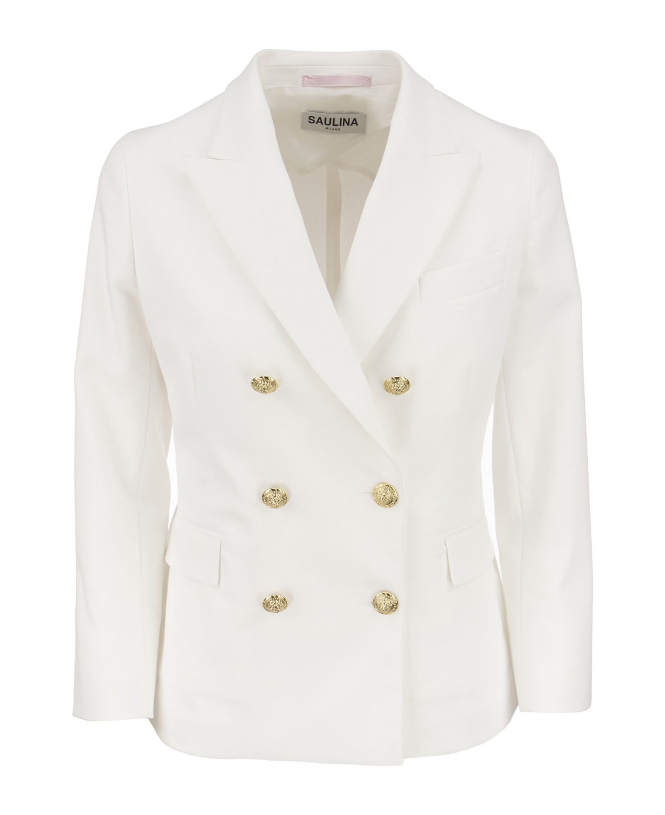 Historical Italian brand, synonymous with quality and creativity. - Double-breasted jacket - Straight 7/8 sleeve - Gold coloured buttons - Multi-pockets - Semi-lined interior DESIGNER ID: SA5022 1