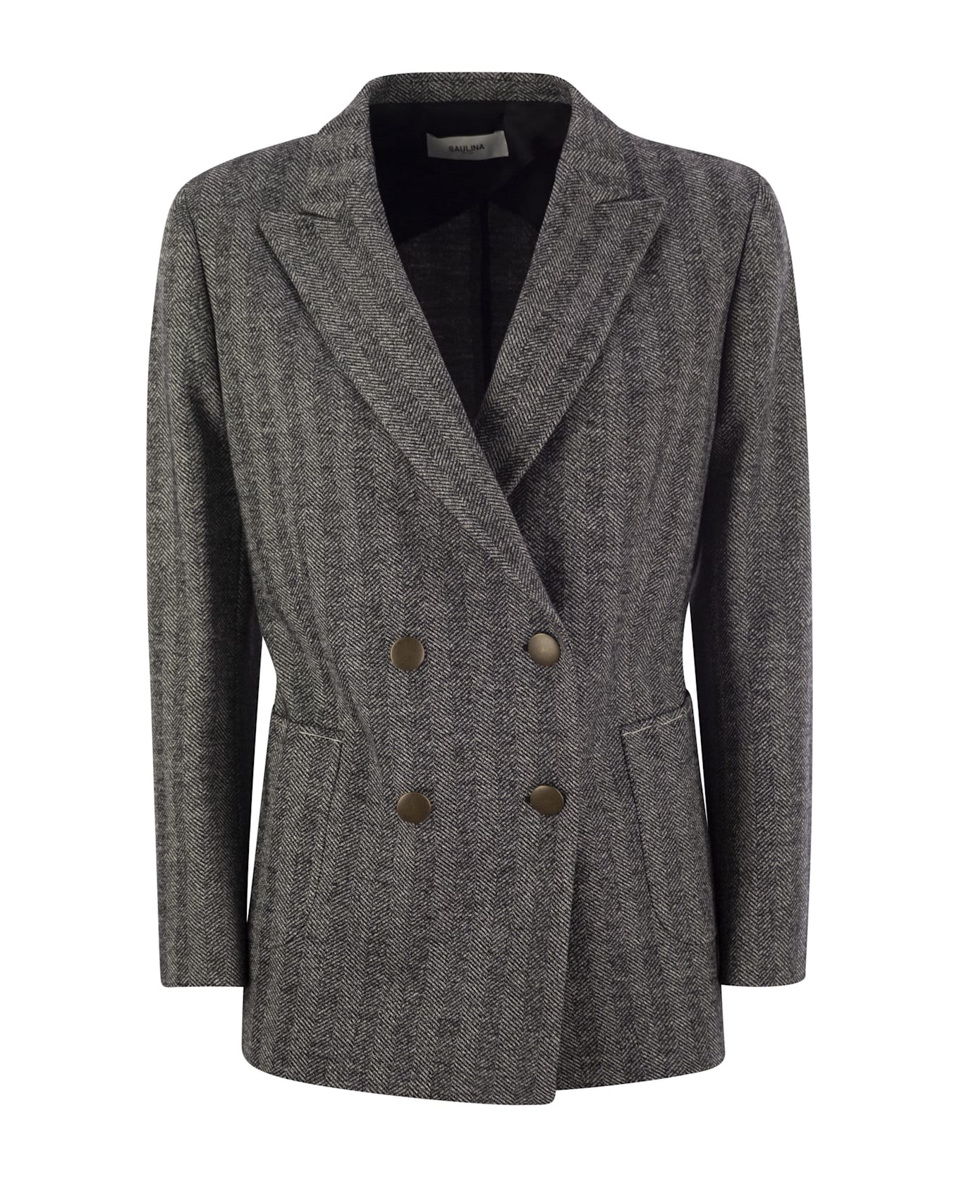 Historical Italian brand, synonymous with quality and creativity. Double-breasted jacket with bronze-coloured buttons and regular fit. - Herringbone workmanship - Double-breasted - Button closure DESIGNER ID: SA8118 6