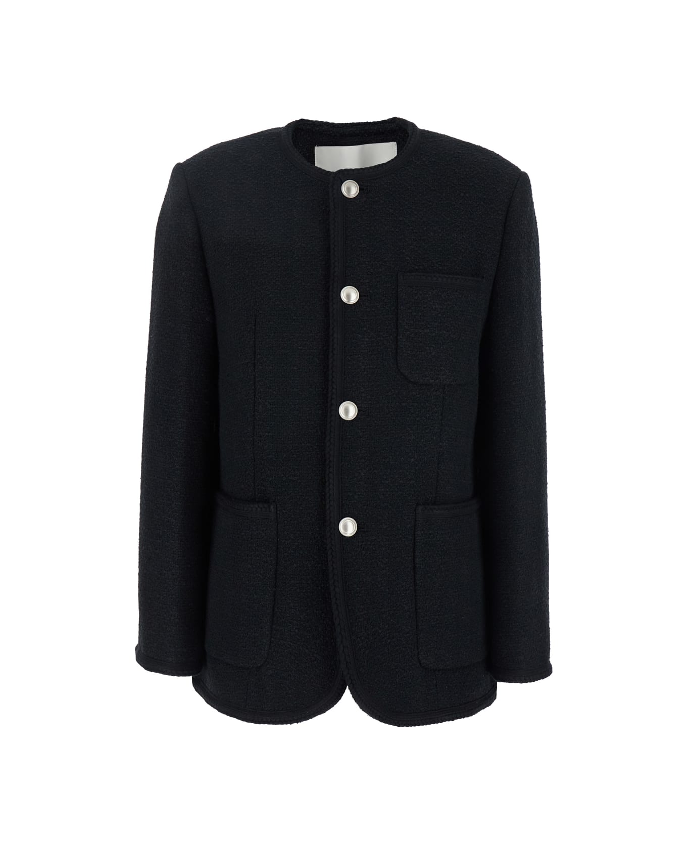 Black Oversize Collarless Jacket In Cotton Blend Woman