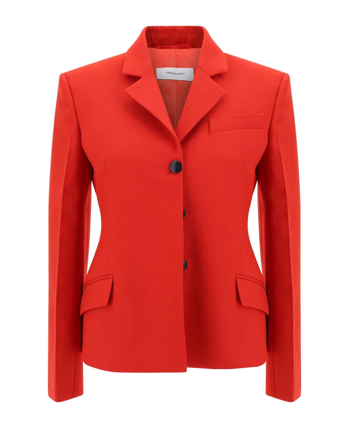 Wool blazer jacket by ferragamo, classic lapels, front button closure, two front patch flap pockets, structured and padded shoulders, two back slits, one front welt pocket, monochrome design, regular fit. Composition: 100% % Wool