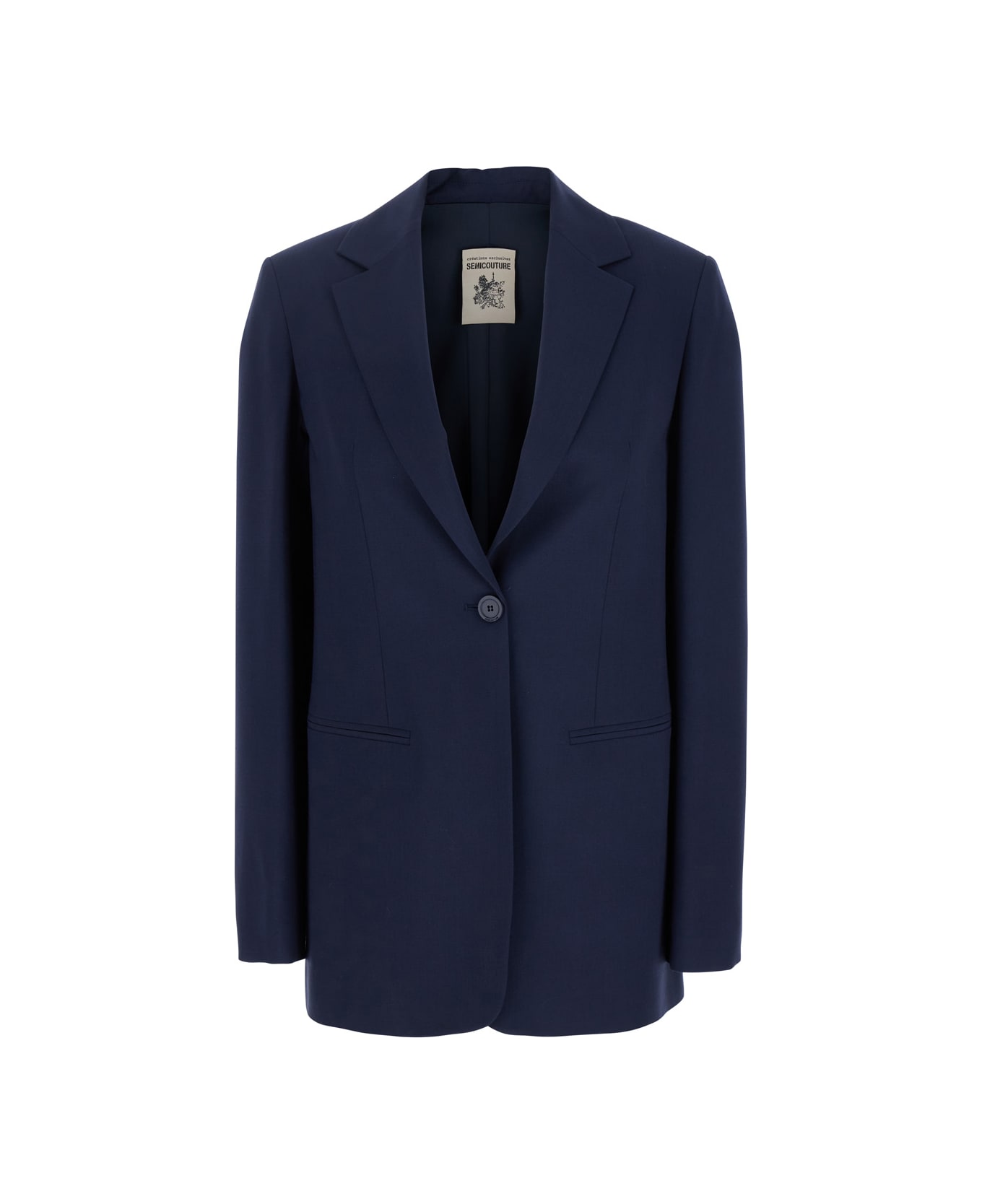 Blue Single Breasted Jacket With Classic Lapels In Tech Fabric Woman