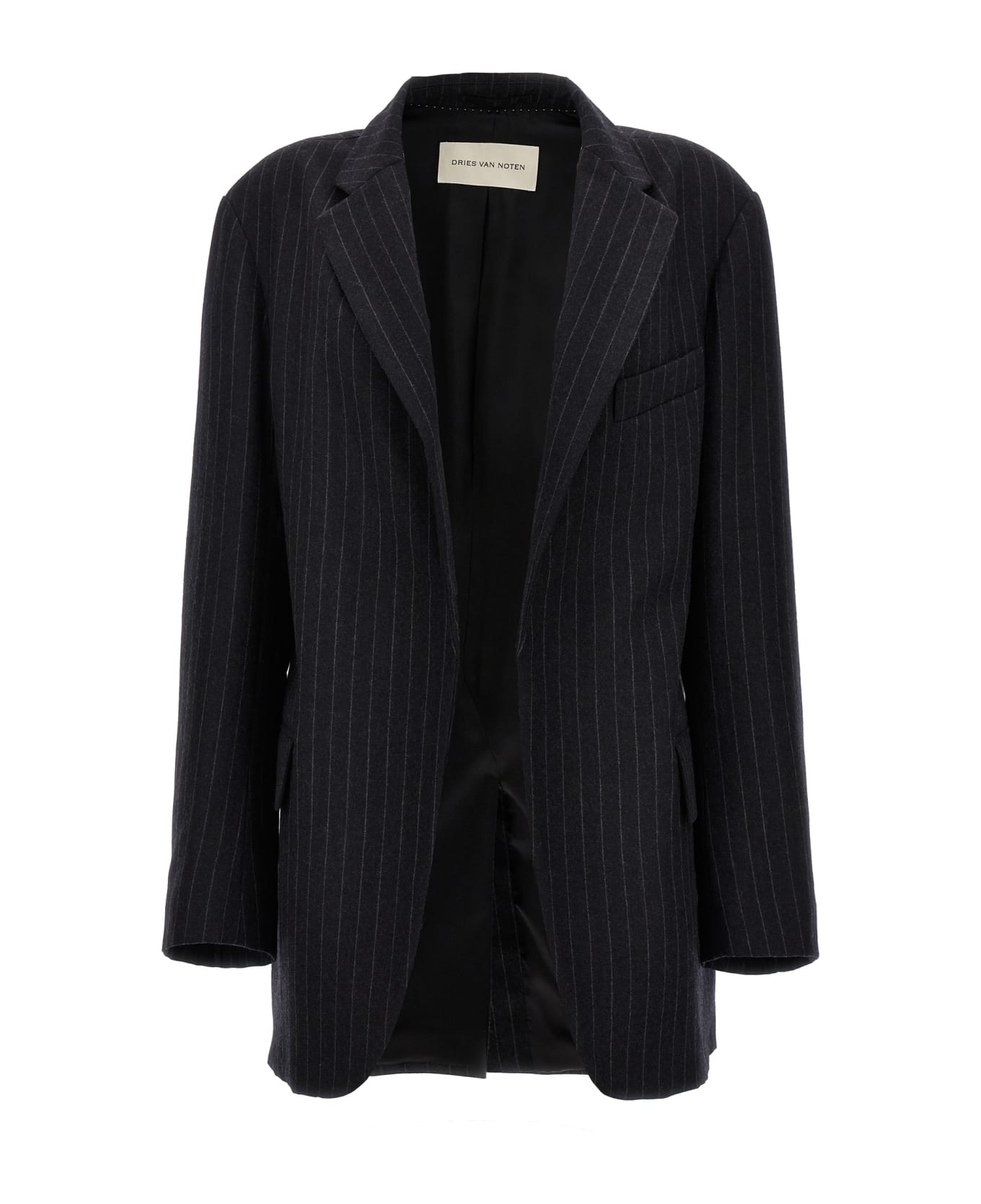Pinstripe wool 'Blurs' blazer with front opening, pockets, back split, and long sleeves.