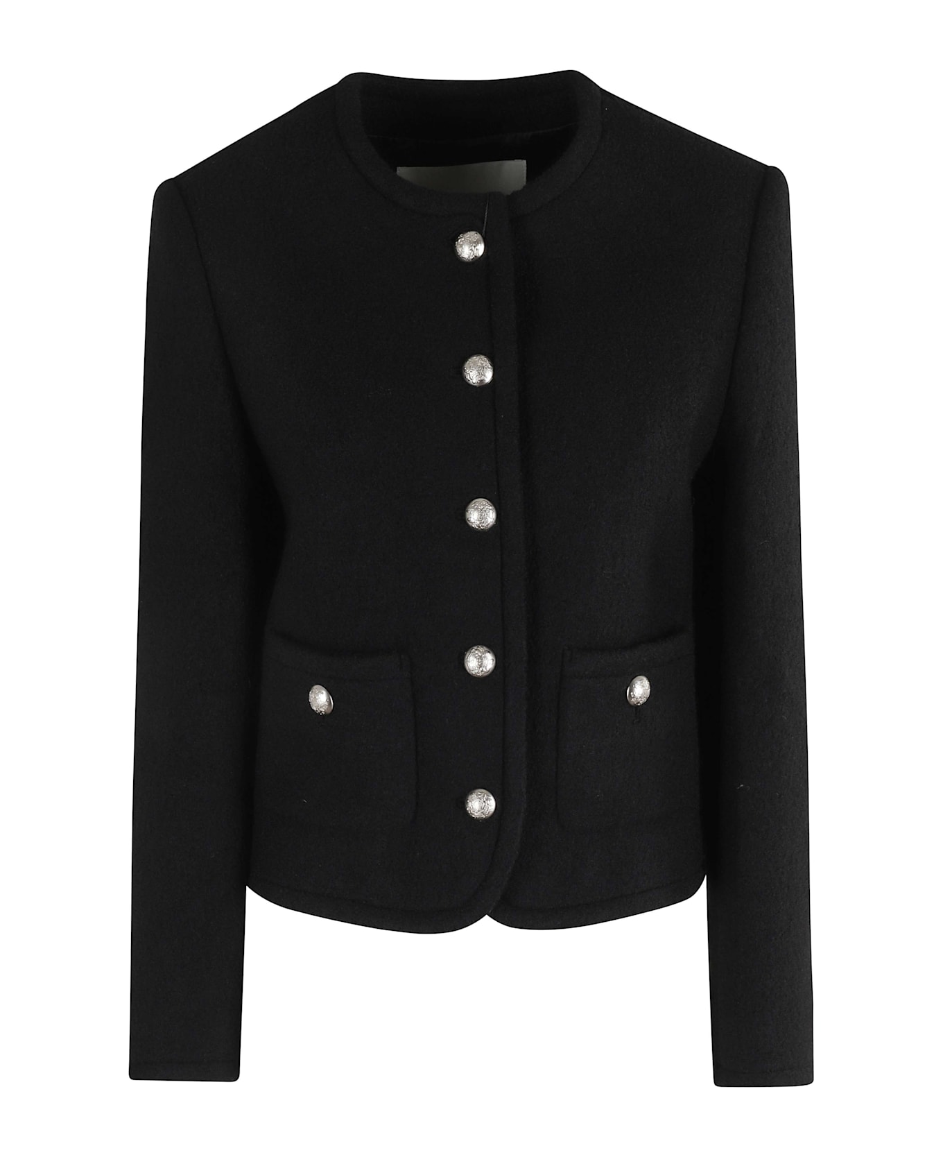 Jacket - Dunst - Black color - Tweed fabric - Crewneck - Patch side pockets with button - Front button closure - Cropped pattern