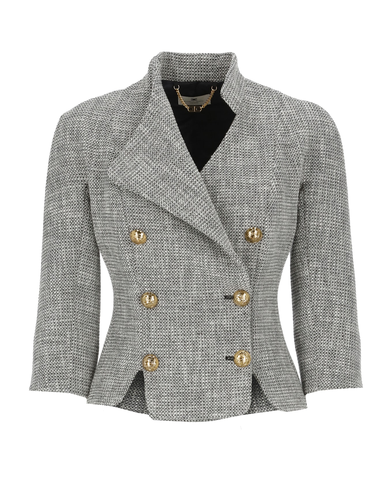- Grey Elisabetta Franchi cotton blend blazer for woman - V-neck - Long sleeves - Front double chest fastening with logoed buttons