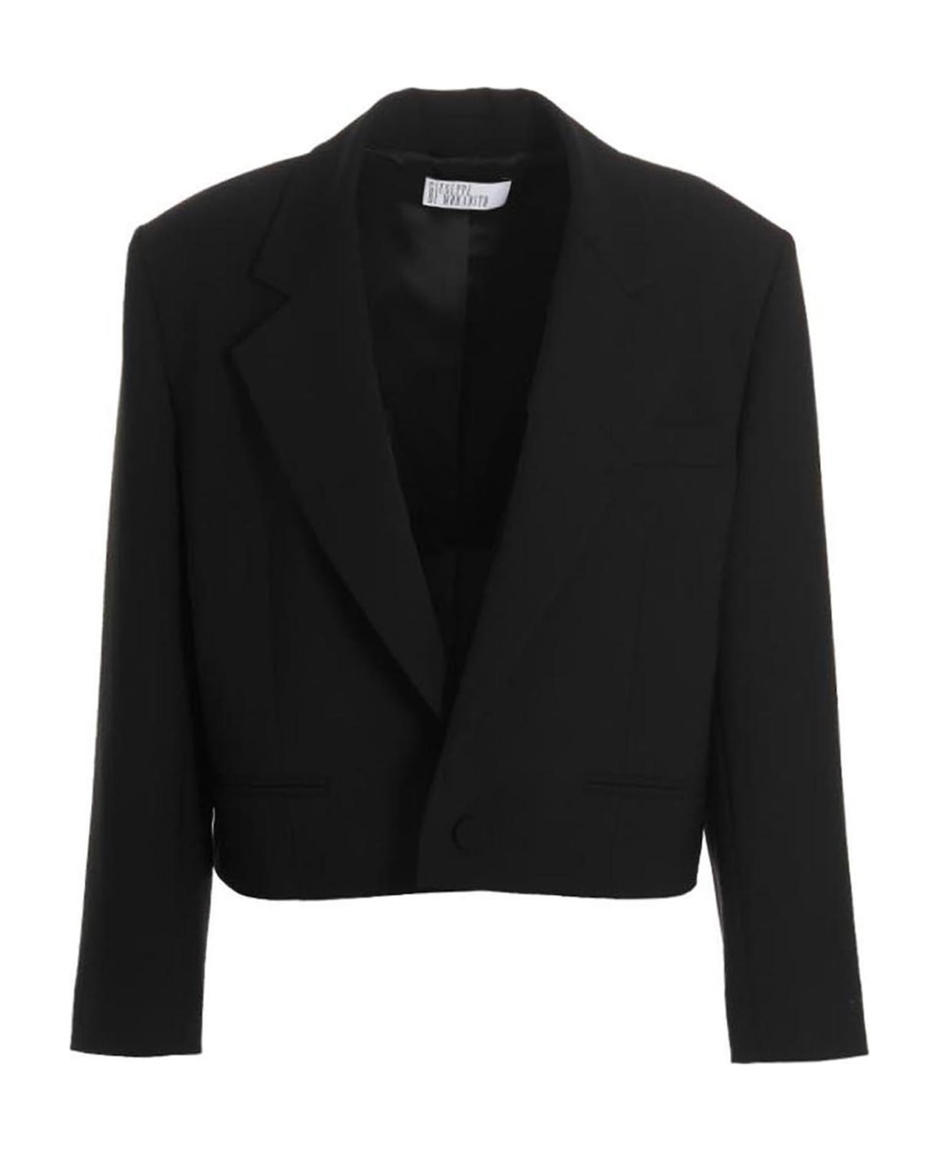 Single-breasted cropped blazer in double twisted canvas with button closure, pockets and long sleeves.