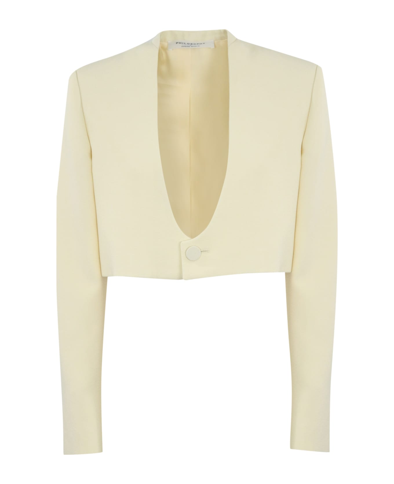 women's viscose blend jacket: viscose blend long sleeves deep v-neck front button closure padded shoulder pads cropped waist lined regular fit composition: 93% viscose, 7% polyamide