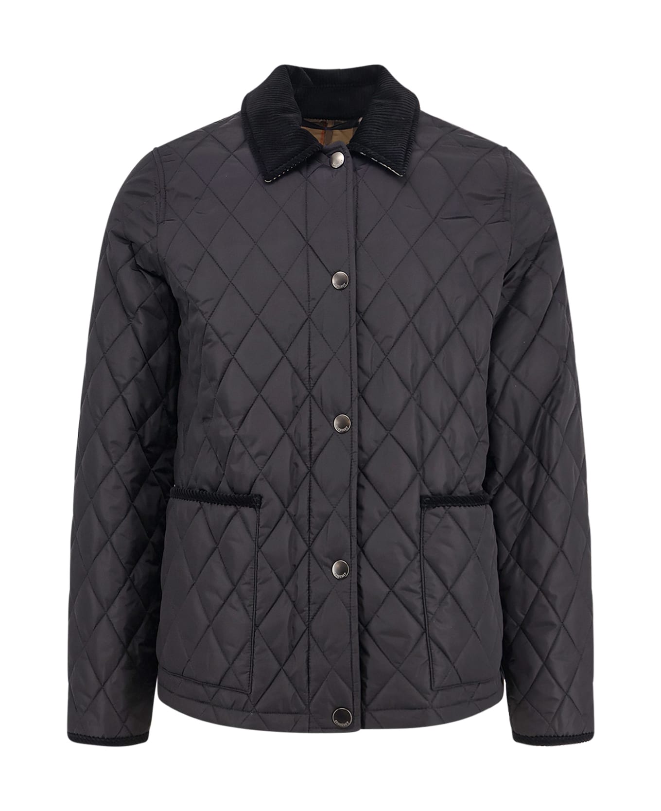 Closure with snap buttons Corduroy collar Two applied pockets on the front Traditional Check lining 100% polyamide Lining: 100% cotton Padding: 100% polyester SKU: 8107510C1900