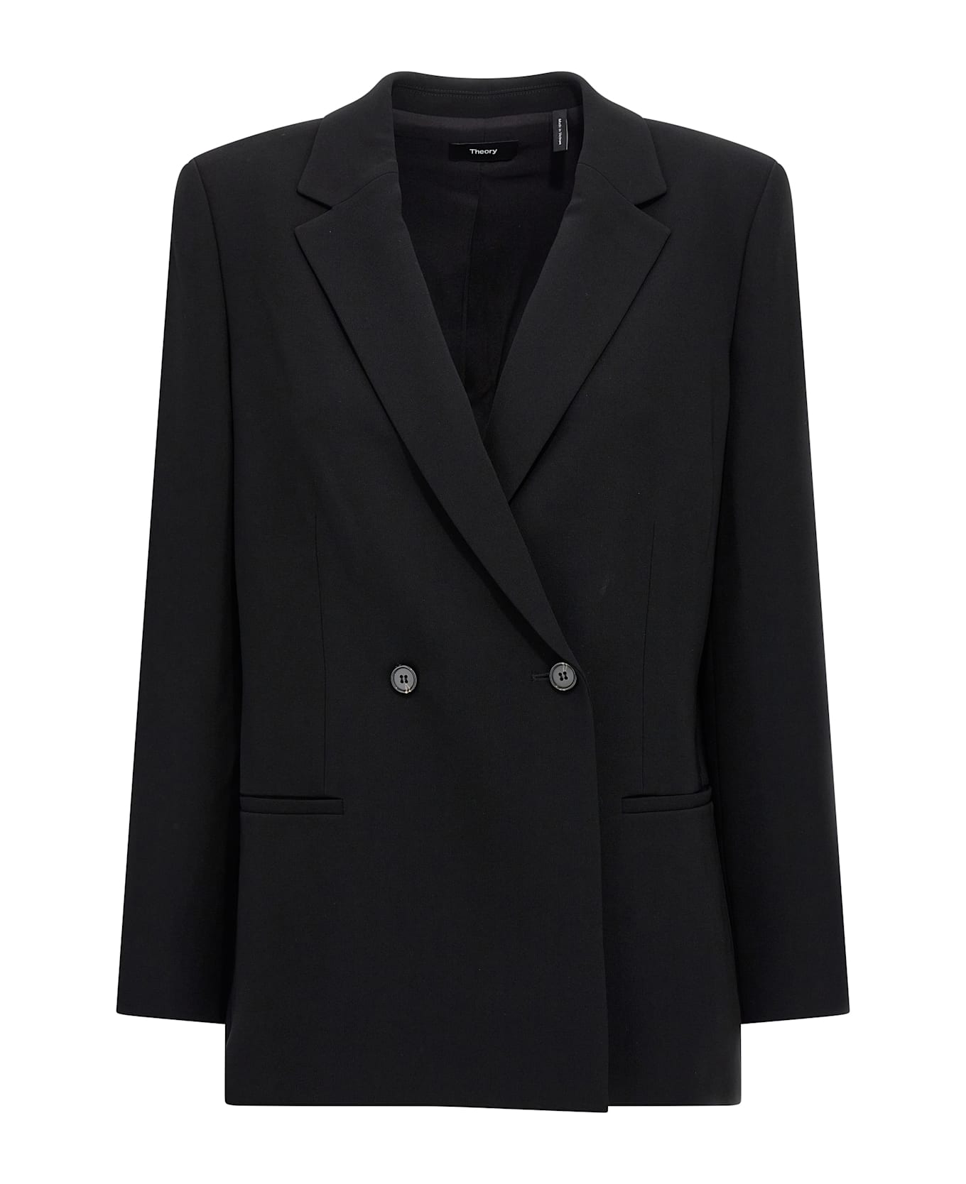 Double-breasted synthetic fabric blazer with button closure, mirror lapels, pockets, long sleeves, back split and padded shoulder. Composition: 70% triacetate 30% polyester