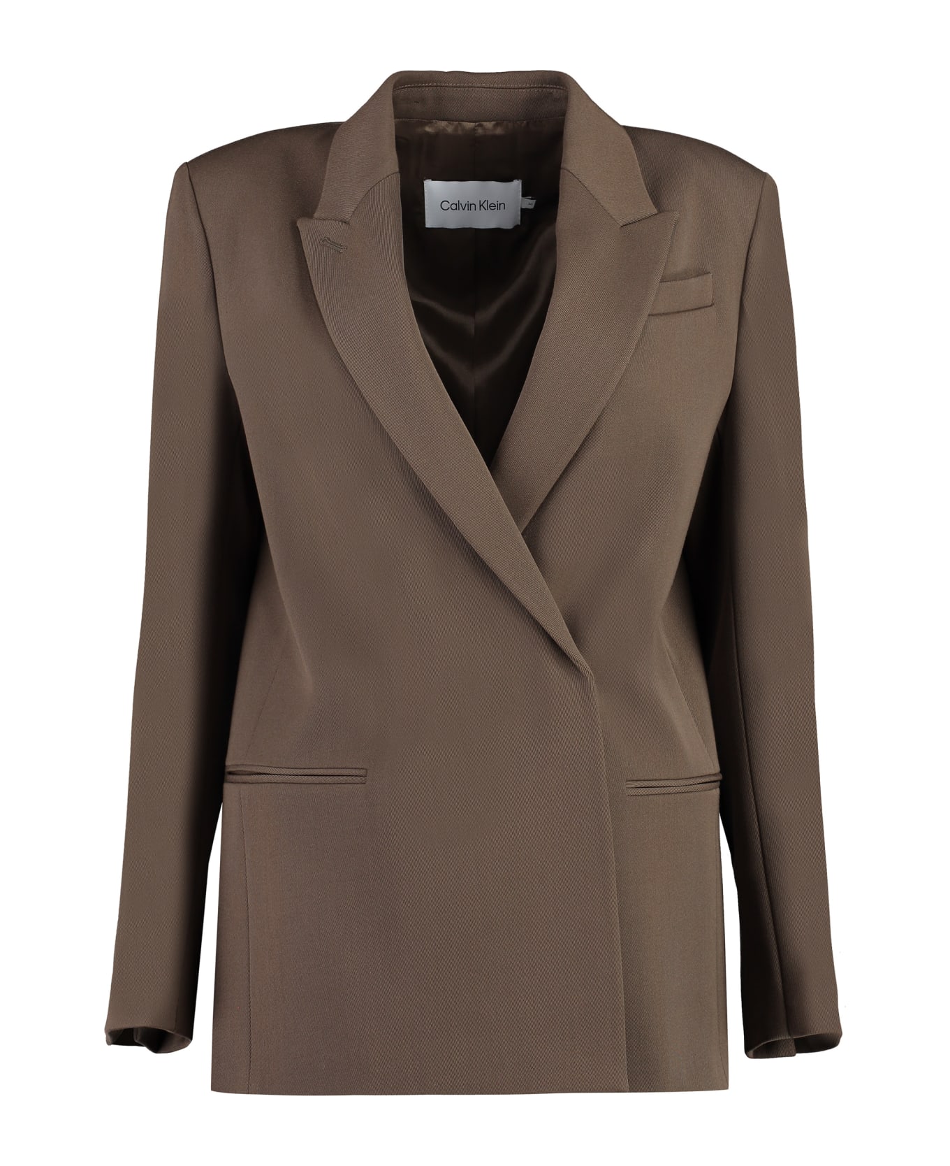 Lapel collar two welt pockets and chest pocket on the front hem with back slit 44% wool, 2% elastane, 54% polyester Composition: 44% % Wool, 2% % Elastane, 54% % Polyester