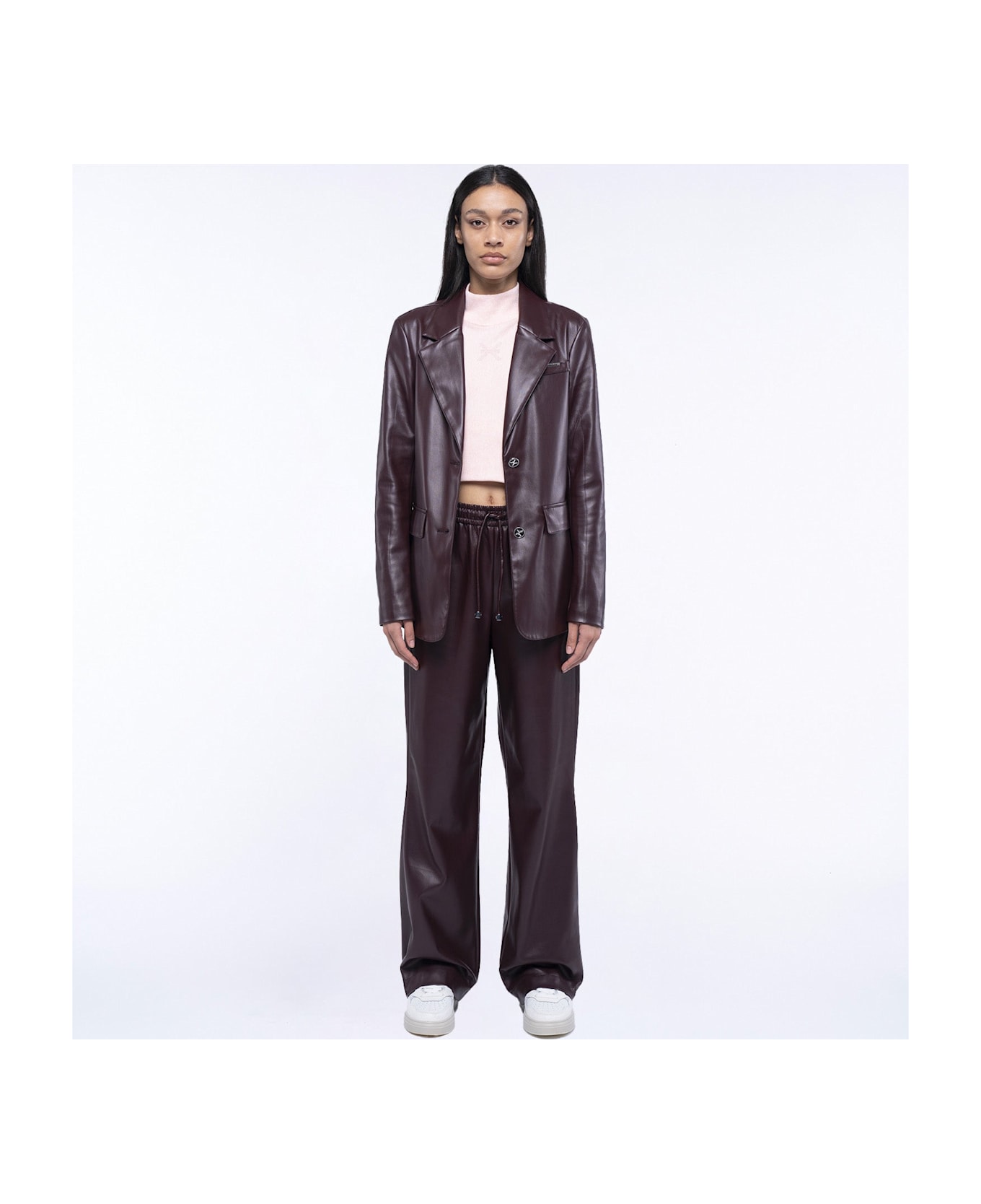 Eco-leather blazer with side pockets.