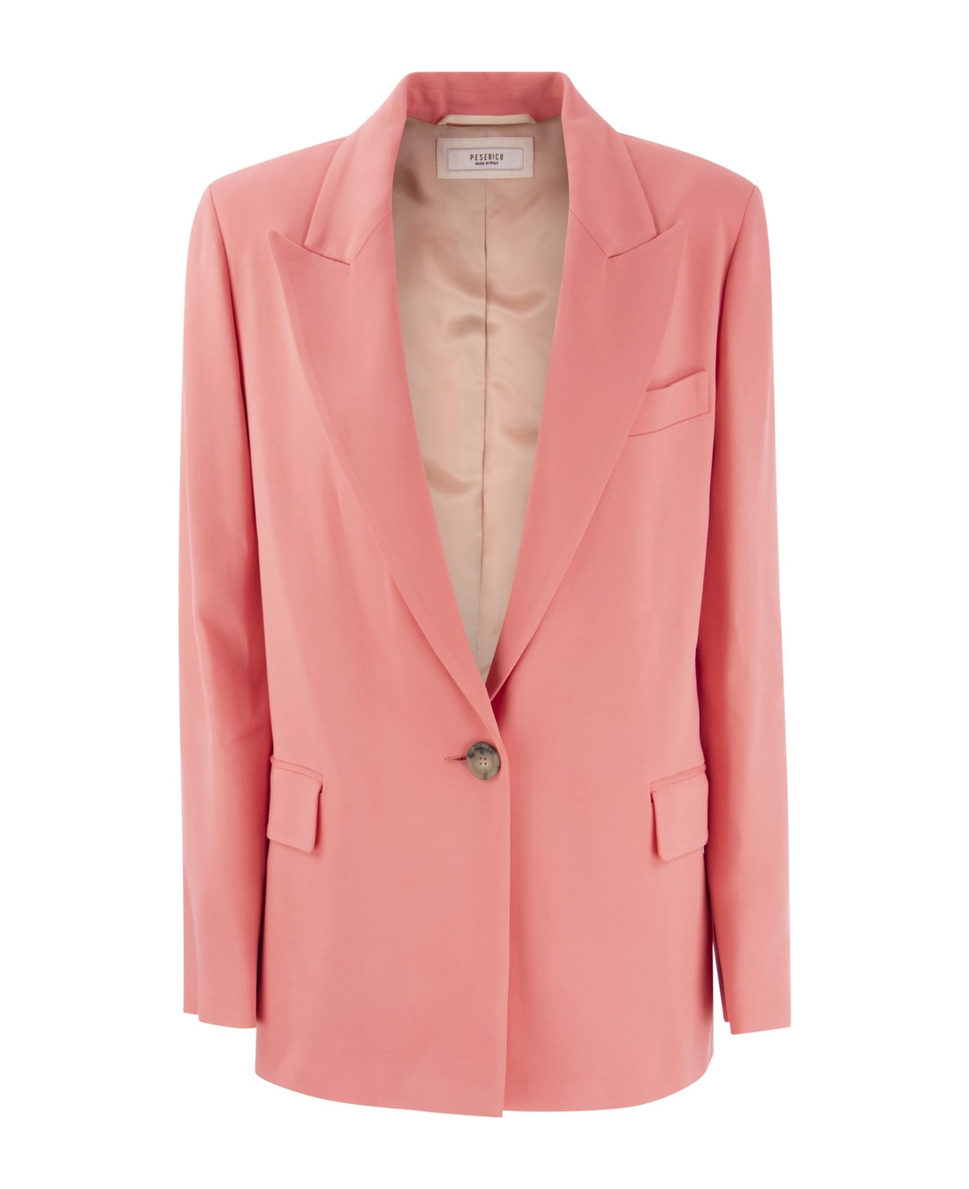 Each Peserico garment is born from the sartorial passion that has always been linked to the history of the area: the products are made entirely in Italy, conveying the style and quality that have distinguished the collections from the very beginning. - Peaked lapels with epaulettes - Single button front closure - Flap pockets - Straight fit - Half-lined - Long sleeves with buttons DESIGNER ID: S01976D 02747 524 Composition: 96% Viscose, 4% Elastane Lining: 100% Viscose