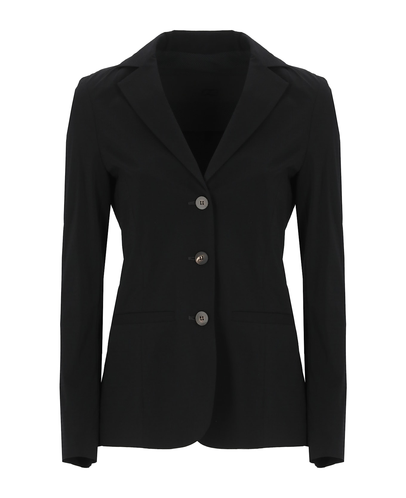 - Black RRD Roberto Ricci Design blazer for woman - Classic lapel collar - Front buttons fastening - Long sleeves with buttons - Two front welt pockets - One rear vent at hem Composition: 88% Polyamide, 12% Elastane Lining:, 90% Polyamide, 10% Elastane