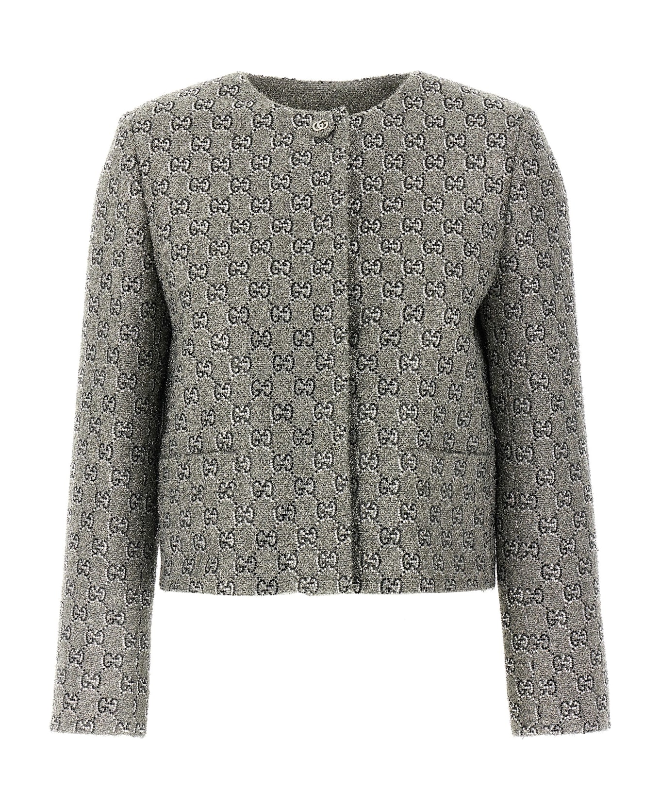 GG wool tweed jacket with optical effect, GG embroidery with all-over crystals,