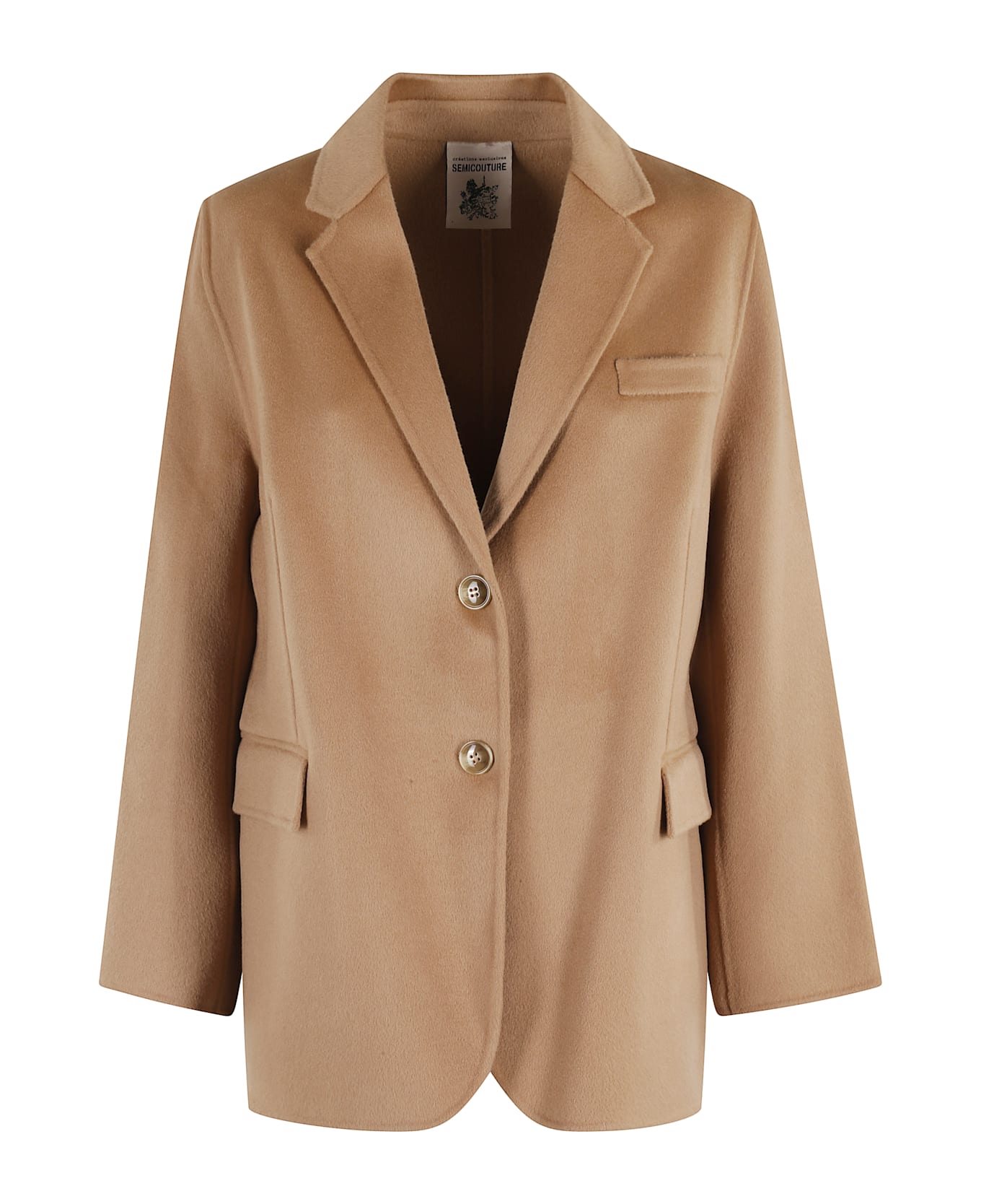 Camelia jacket - Semicouture - Desert color - Wool cloth fabric - Lapel neckline - Flap side pockets - Single breasted two button closure