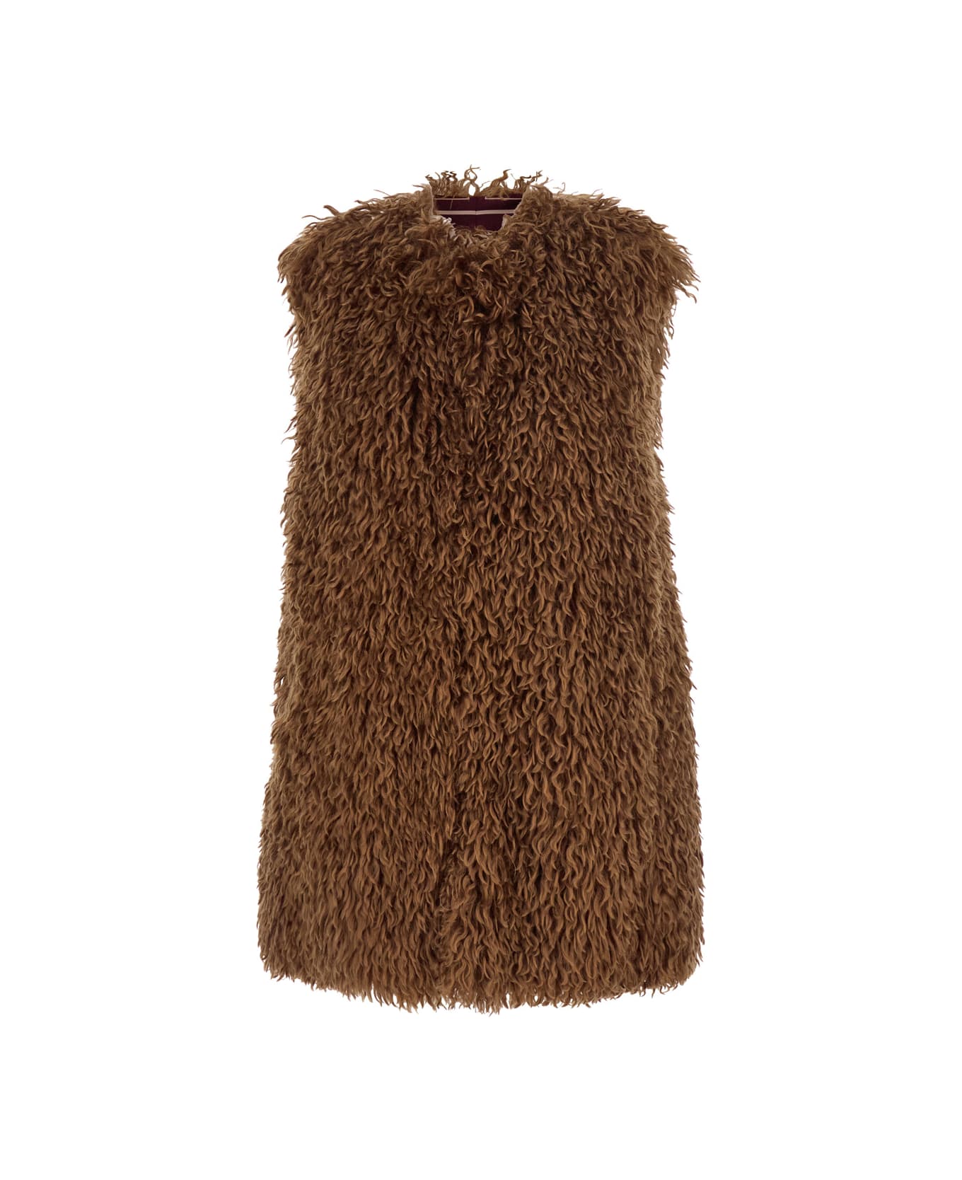 'monny' Brown Vest With Open Front In Faux Fur Woman