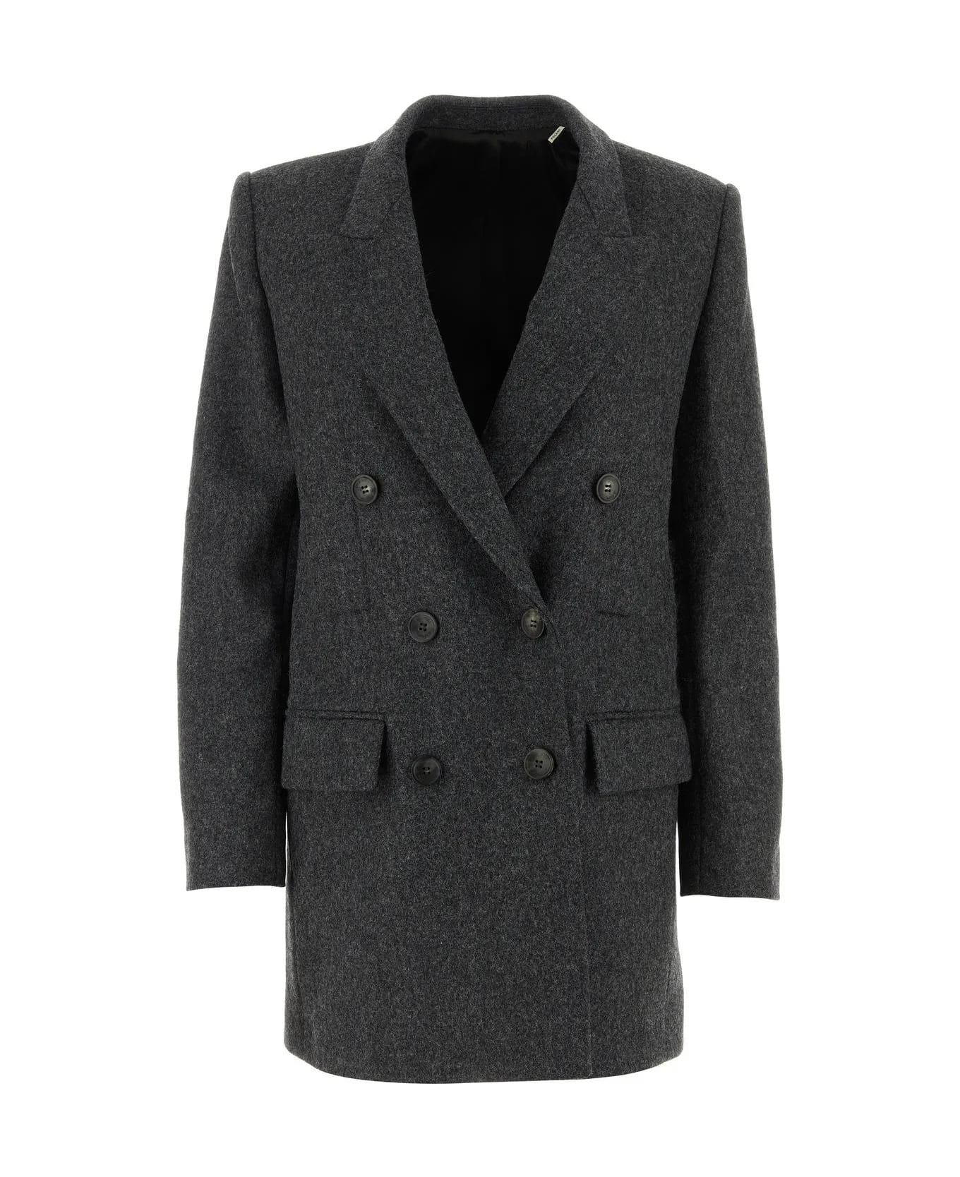 Blazer realized in pure wool felt characterized by peak lapels. - Padded shoulders - Double-breasted closure by buttons - Two slit pockets and two flap pockets at the front - Buttoned cuffs - Central slit at the back - Lined Composition: Exterior: 100% Wool Lining: 66% Acetate 34% Viscose