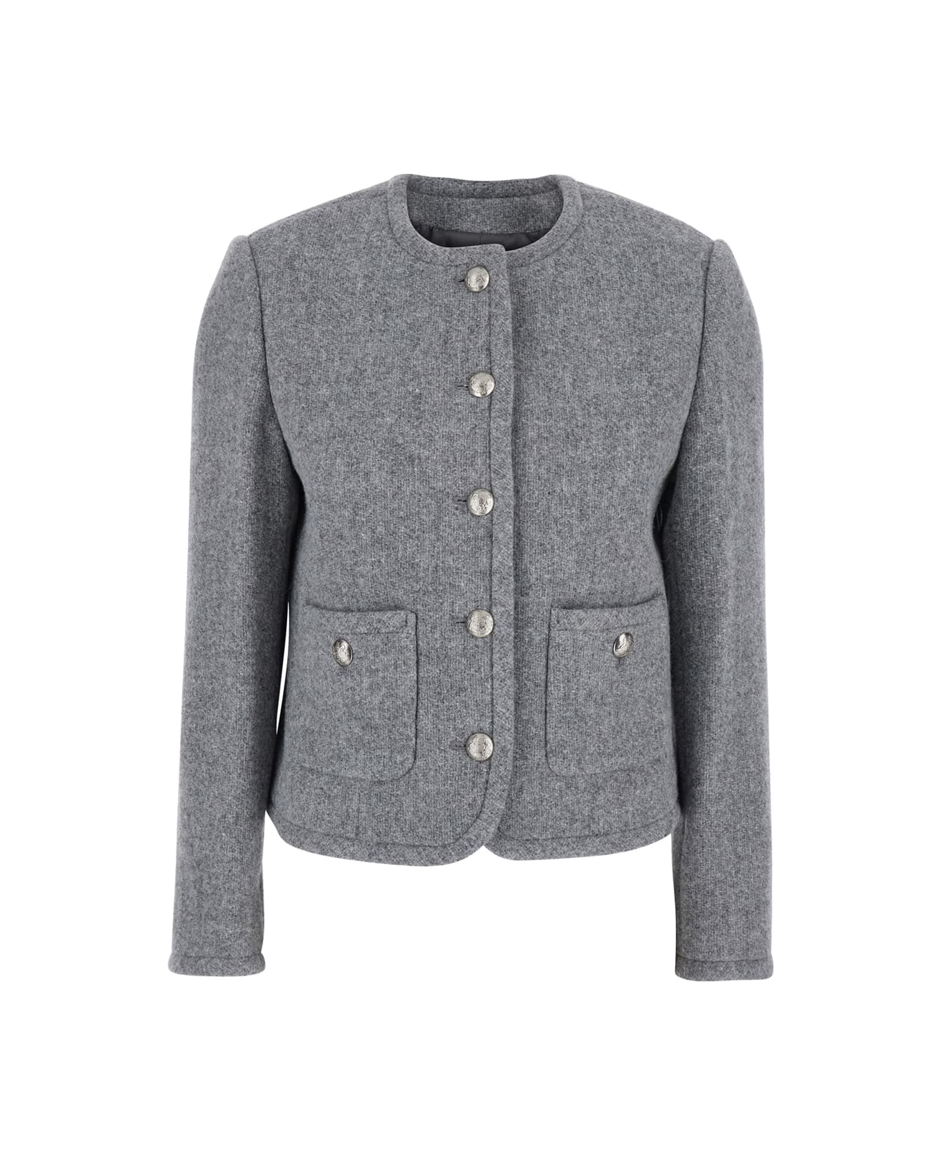 Jacket Grey Crewneck Long sleeves Front button closure Two front pockets Straight hem Tweed Regular fit