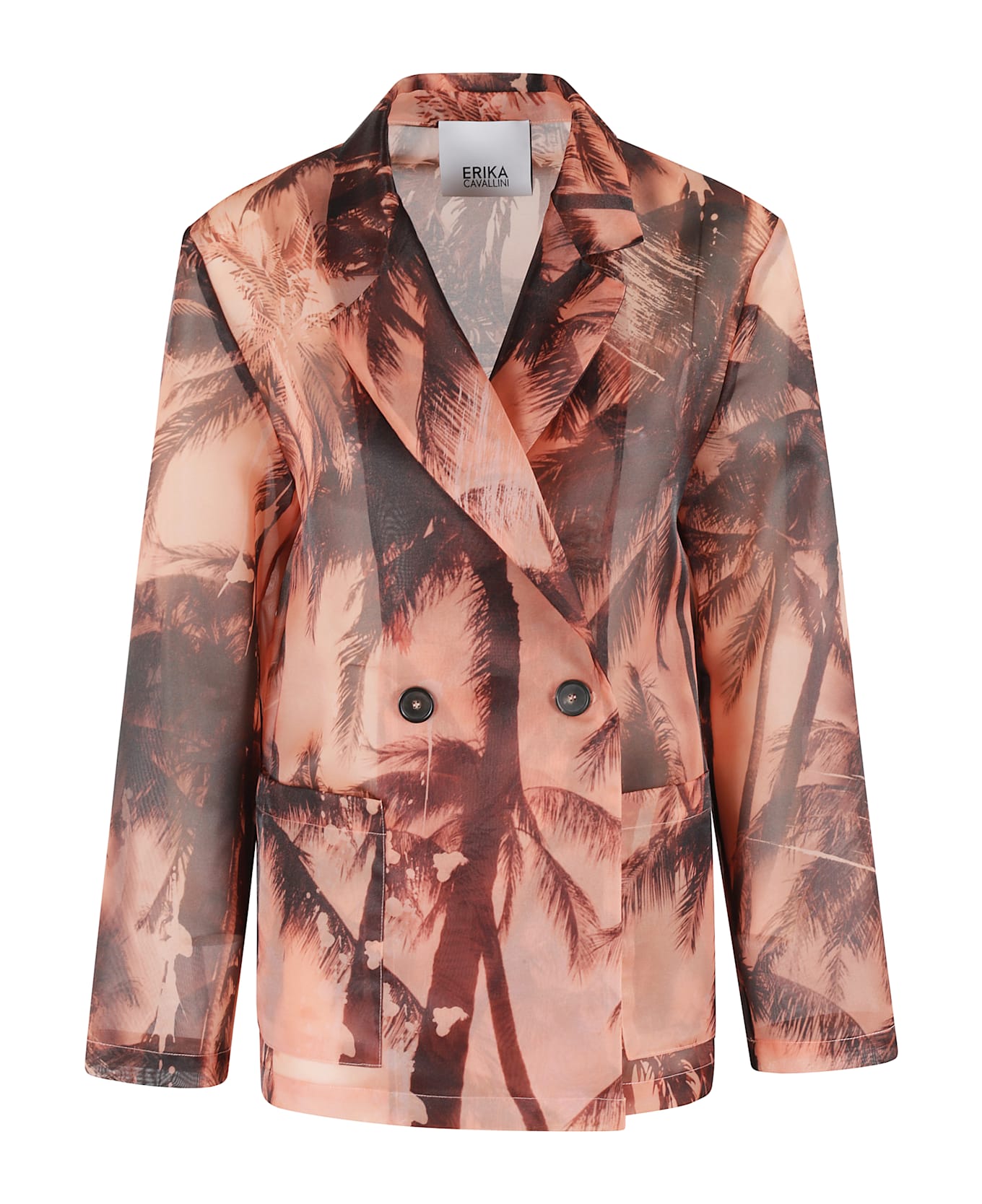 Ida blazer - Erika Cavallini - Peach color - Printed organza fabric - Lapel neckline - Long sleeve - Patch side pockets - Double-breasted button closure - Loose fit