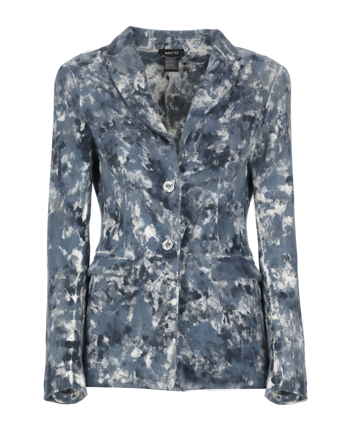 - Blue Avant Toi linen blend blazer for women - Peak lapel collar - Long sleeves - Two front flap pockets - Front buttons fastening - All-over contrasting color pattern