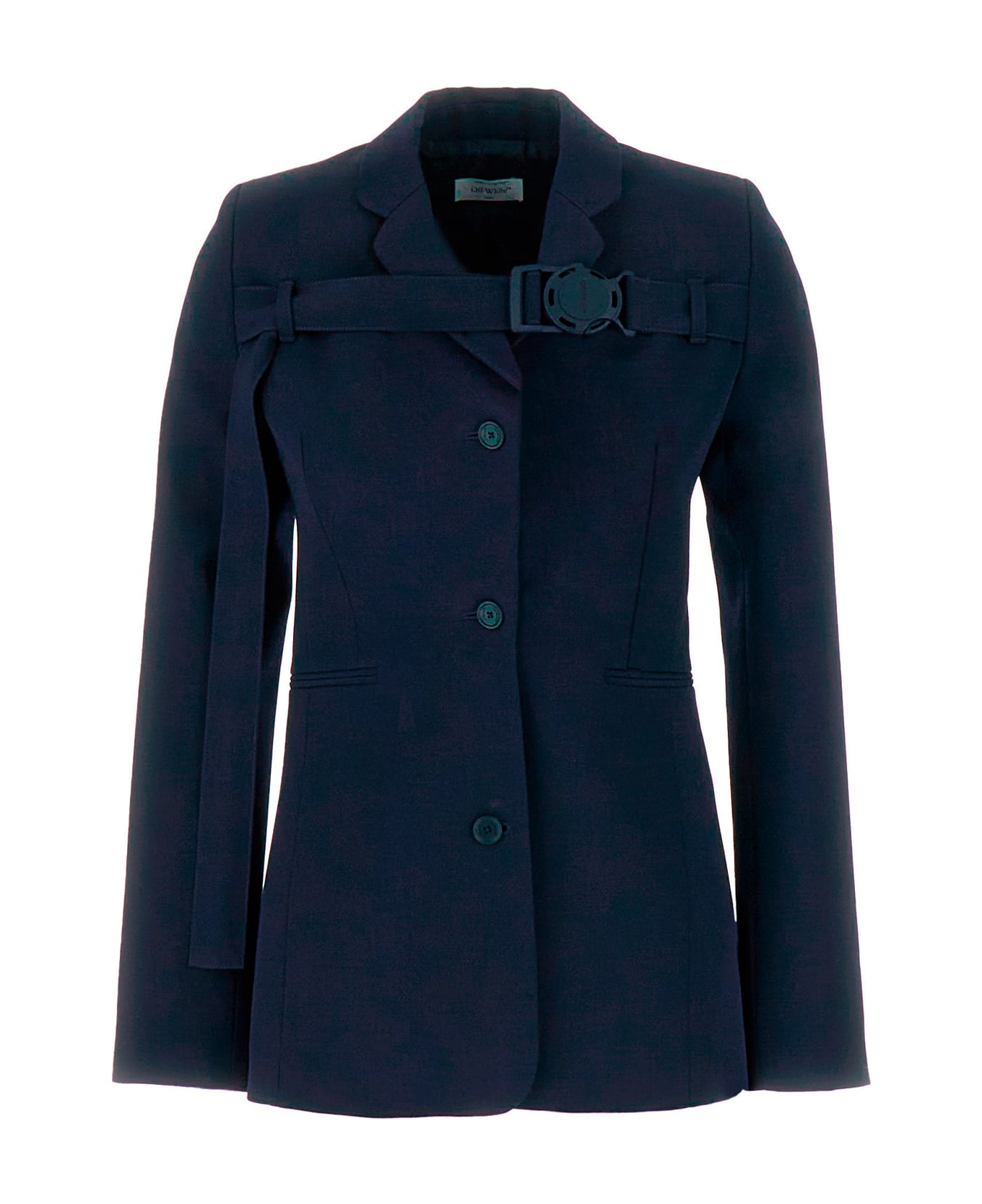 Blazer realized in pure wool enriched by tonal fabric belt on the chest. -Notch lapels -Single-breasted closure by three buttons -Two slit pockets at the front -Four buttons on the cuffs -Central slit at the back -Lined
