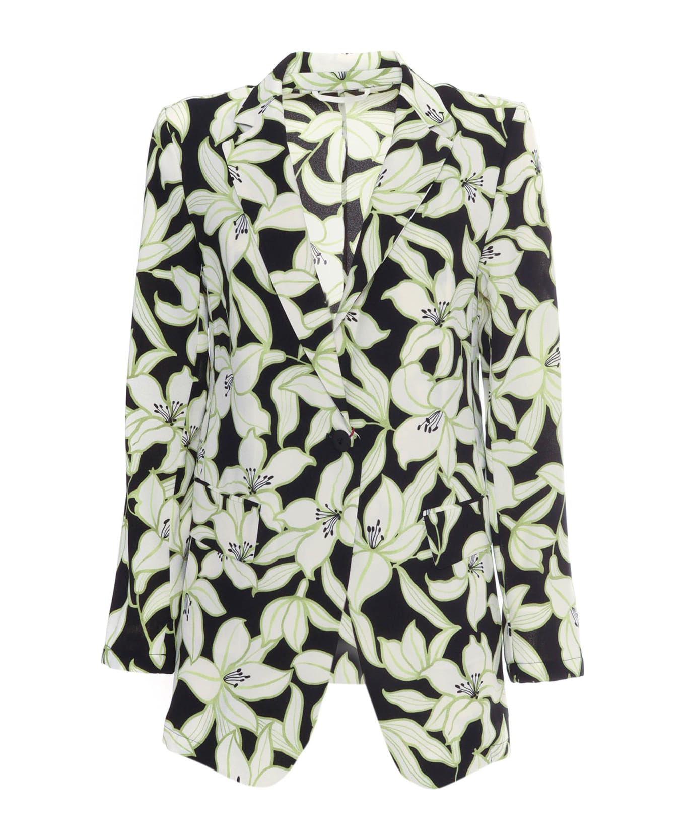 Stretch cady blazer, floral motif, lapel collar, single-breasted with single button, patch pockets with flap, unlined Composition: 96% POLYESTER 4% ELASTANE