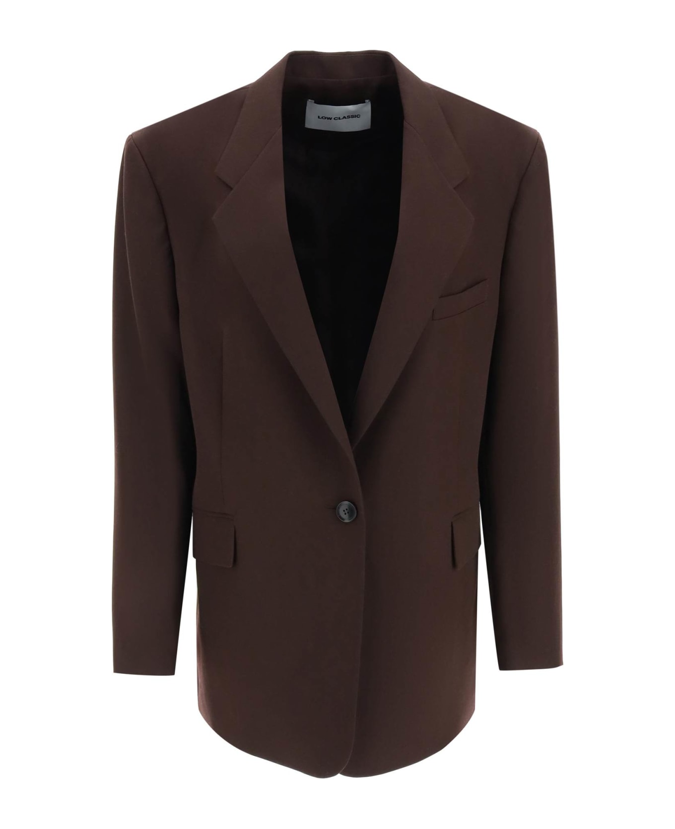 Low Classic oversized blazer in pure wool twill with elongated cut. It features button closure, classic lapels, flap pockets and branded buttons at the cuffs. Lined, with an inside pocket. The model is 177 cm tall and wears a size S.