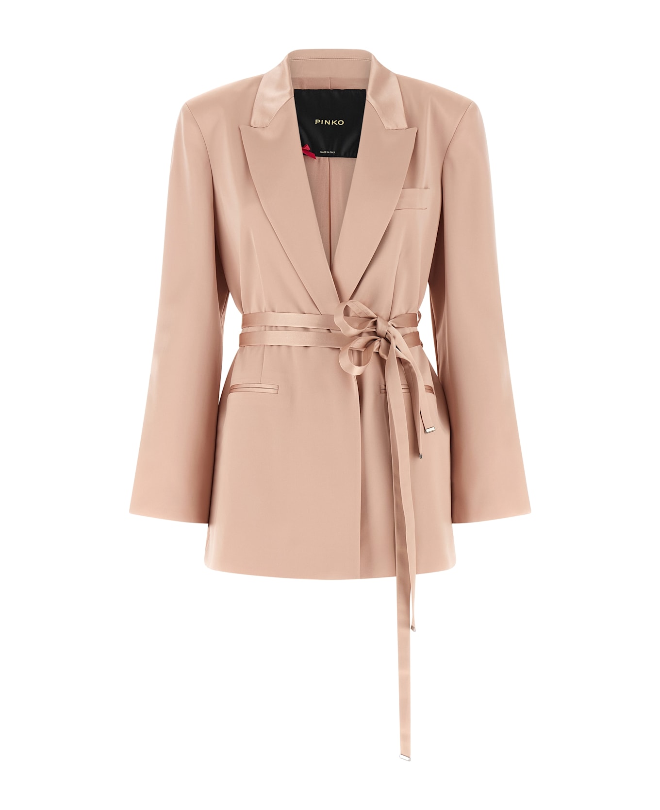 Rapa' satin blazer with slightly crossed one-button closure, V-neck with peak lapels, side splits on the sides and adjustable and removable strap with buckle.