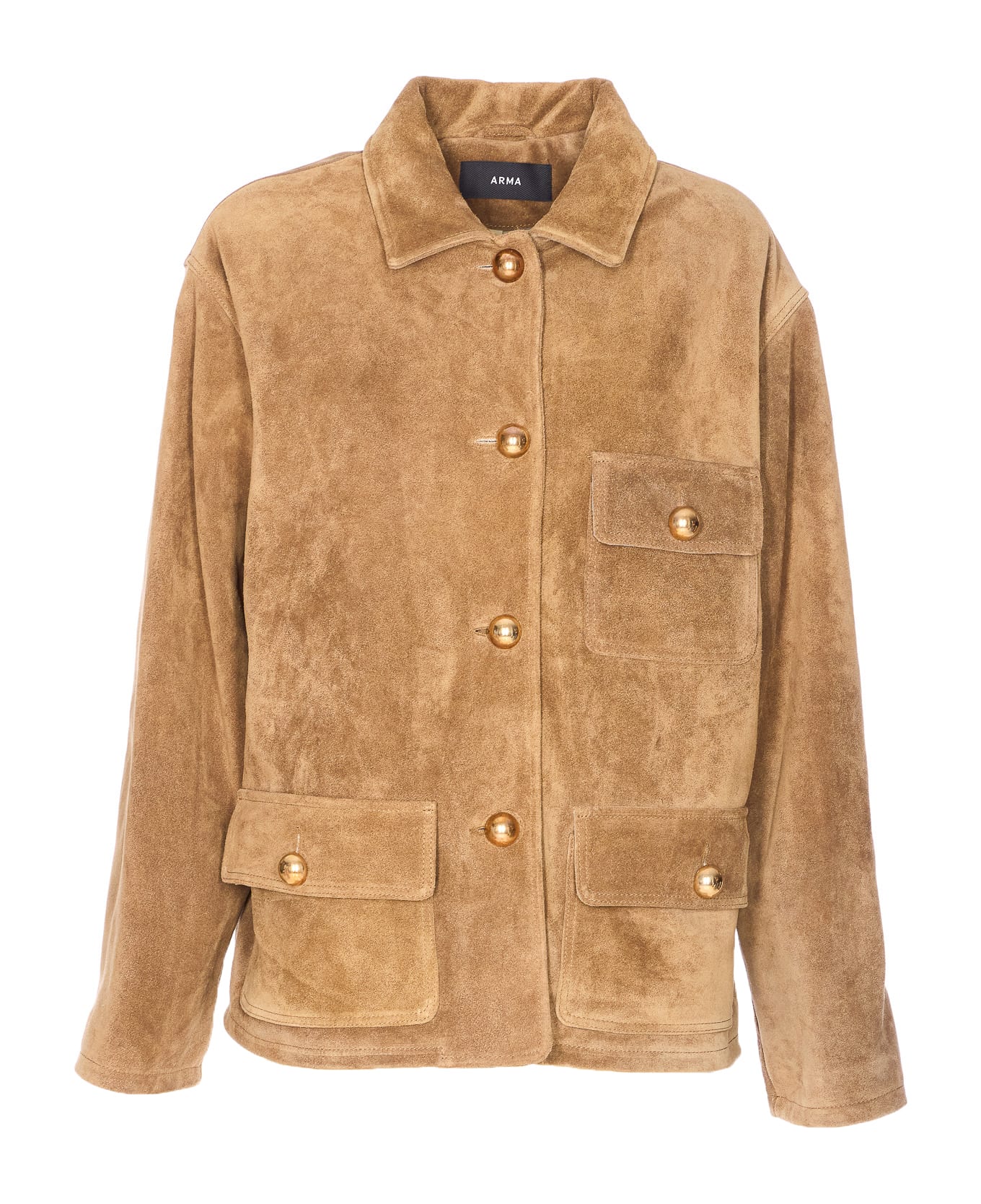 Arma olive Rosia suede jacket with golden buttons closure, long sleeves, pockets on the front, regular collar